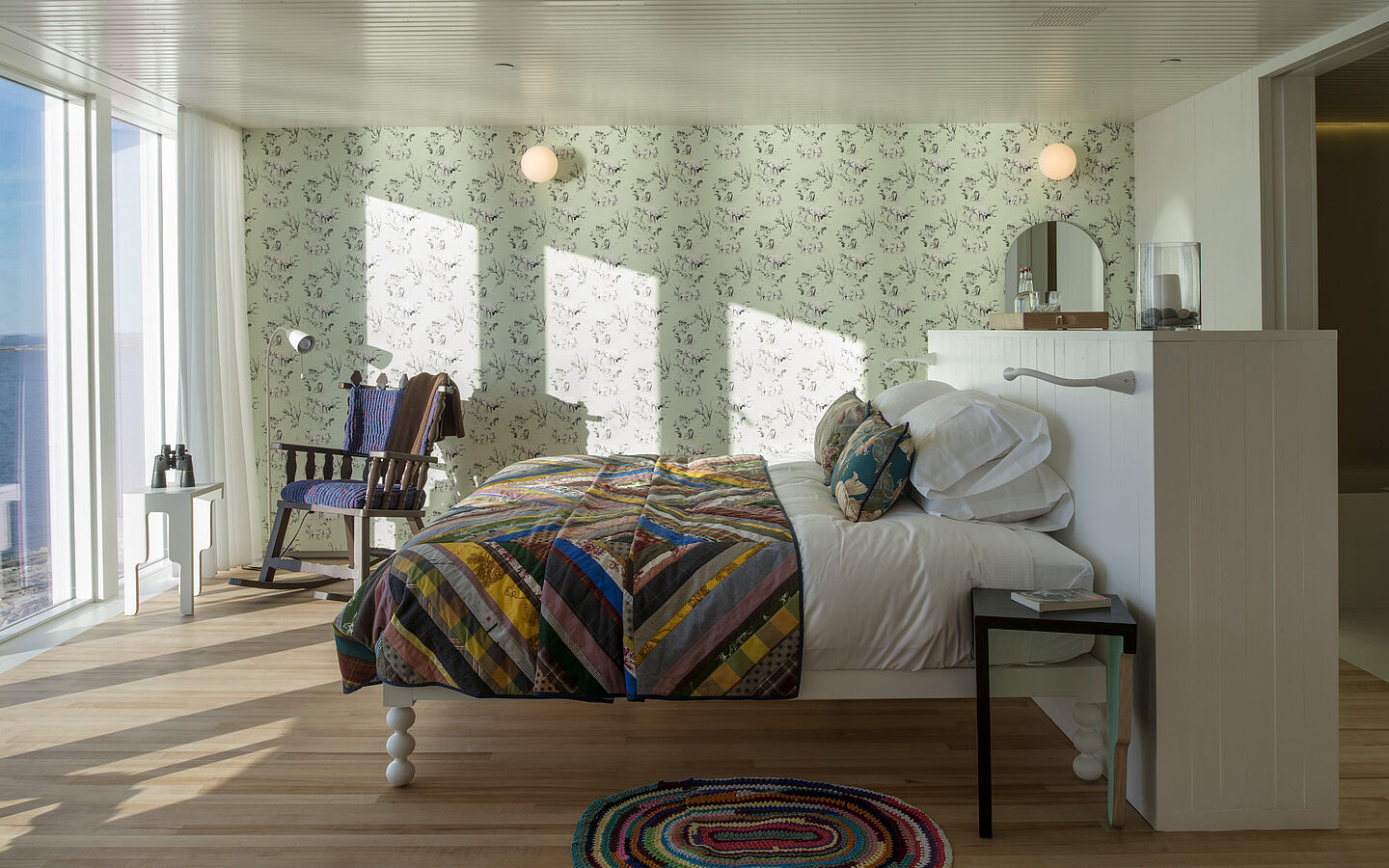 Das wildromantisch gelegene Hotel mit 29 Gästezimmern, Sauna, Kino und Bibliothek wurde vom lokalen Architekten Todd Saunders entworfen. Auch die Möbel, Textilien und Einrichtungsgegenstände werden auf der Insel produziert. Raumhohe Fenster lassen das Haus mit der Natur eins werden. Das Fogo Island Inn hat verschiedene Initiativen zum Thema „Ocean Ethic“ ins Leben gerufen, darunter eine für nachhaltigen Kabeljau-Fang. www.fogoislandinn.ca