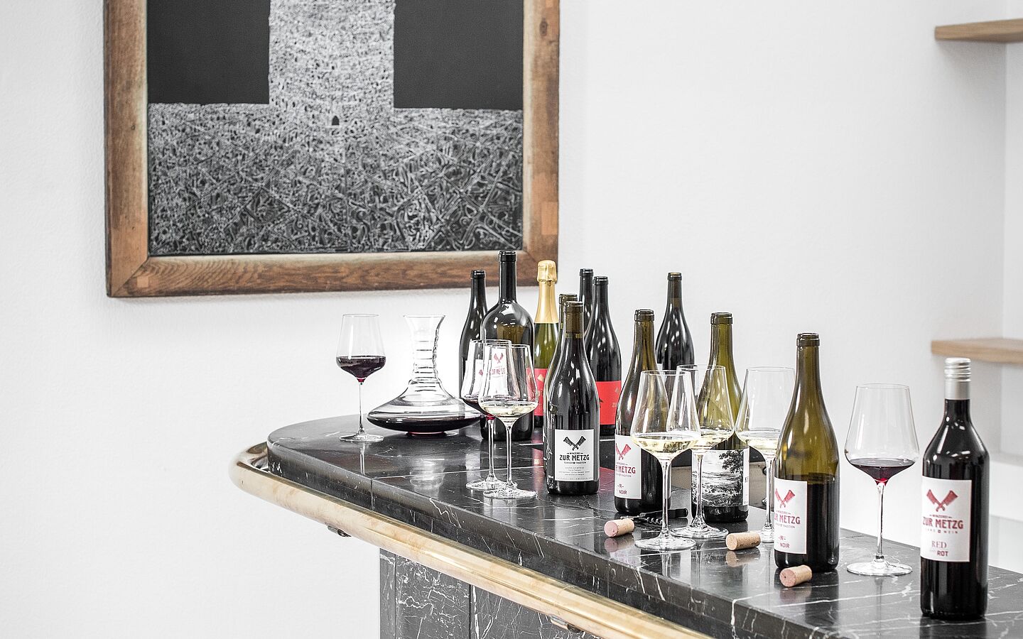 Patrick Thalmann verlegt seine Winzerei Zur Metzg an die Bärchistrasse 7b in Marthalen, mitten ins Zürcher Weinland. Das neue Herzstück der dynamischen Winzerei bildet ein imposantes Degustationslokal, zudem verfügt das neue Domizil über grosszügige Produktions- und Lagerräumlichkeiten sowie eine gute Verkehrsanbindung. Jeweils samstags öffnet die Winzerei die Türen für private Weinliebhaber und interessierte Besucher. Von Sonntag bis Dienstag steht das Team um Patrick Thalmann gegen Voranmeldung für Gastronomen bereit. Das einladende Lokal erstrahlt in blitzendem Weiss mit einer über 7 Meter langen, schwarzen Marmorbar im Zentrum, ein repräsentativer Präsentationsrahmen für die feinen Tropfen des Hauses. Im stilvollen Ambiente stehen nicht nur sämtliche Weine der Winzerei Zur Metzg zur Degustation, sondern auch Tropfen von befreundeten Winzern und ausgewählte Spirituosen. Die spannende Location kann auch für Privat- und Firmenanlässe gebucht werden und wird mit Sicherheit eine neue Genussadresse für eindrückliche Weinerlebnisse in einer spannenden Zürcher Weinregion.