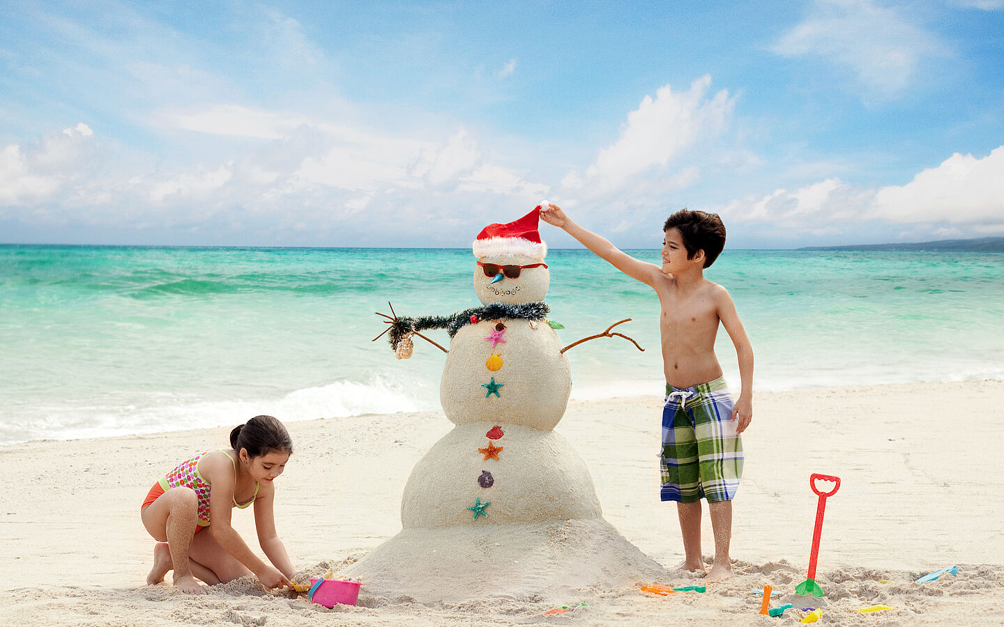 While roast goose, potato salad with sausages or fondue are traditionally served on Christmas Eve in this country, Filipinos opt for a special meatloaf (embutido), a stuffed meat roll (morcon) or stuffed fish (rellenong bangus) as a festive dish. The gift-giving also differs from others, as it begins a few days before the actual festivities with small gifts and ends on Christmas Eve with a large present. But probably the biggest contrast is obvious: in contrast to Europe, the Christmas spirit in the Philippines is created on snow-white beaches at 25 to 30 degrees Celsius ...