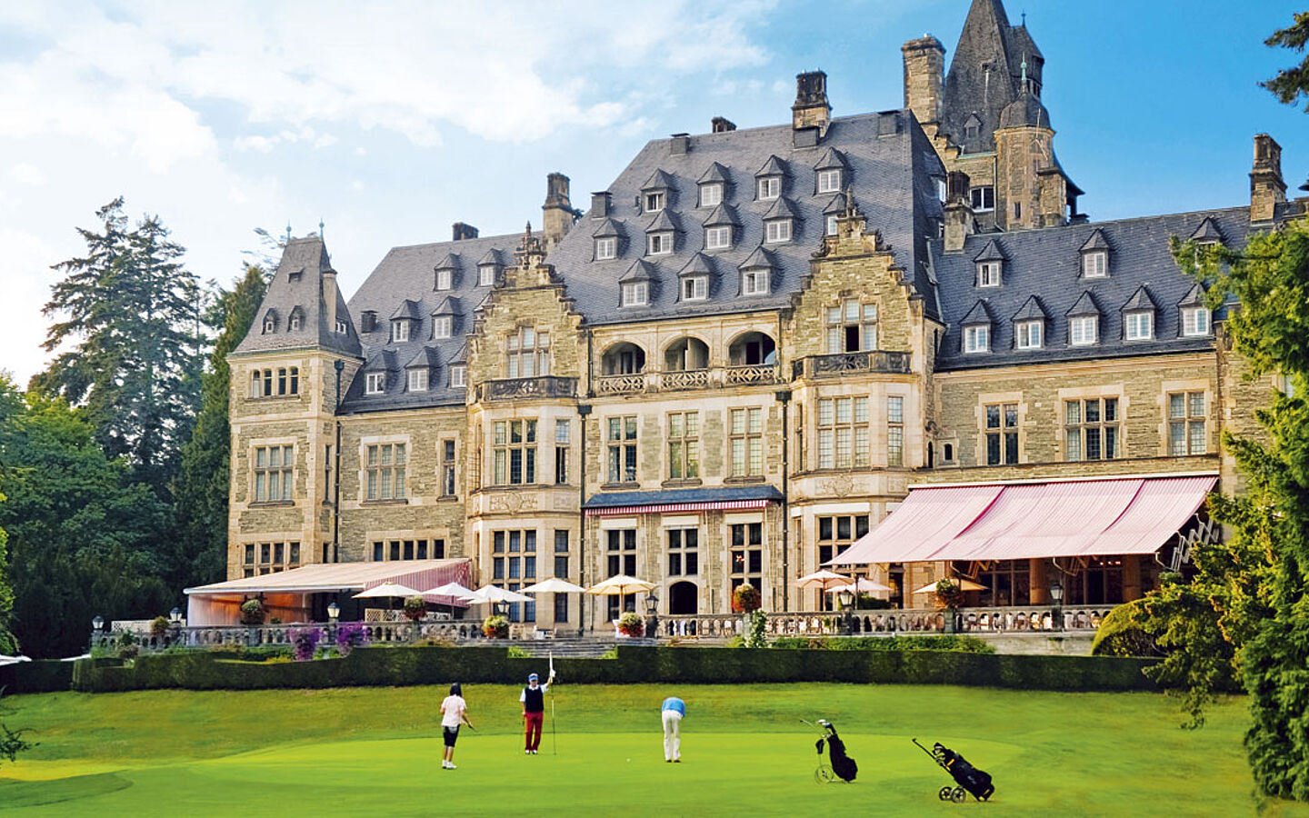 Many hotels in the Taunus offer a high level of luxury and comfort - and often in historic buildings. There are three hotels in the region that meet the highest standards. The Schlosshotel Kronberg has repeatedly been awarded the title of "Germany's Leading Resort" and guests stay in an authentic castle ambience. The luxury hideaway Falkenstein Grand Kempinski promises a breathtaking view of the Frankfurt skyline, and the 5-star boutique hotel Villa Rothschild Kempinski was once the summer residence of the Rothschild family.