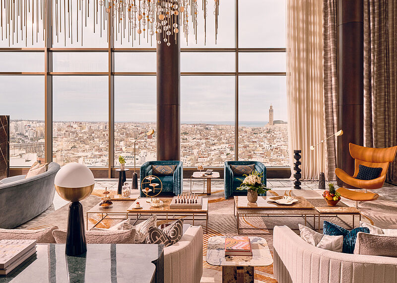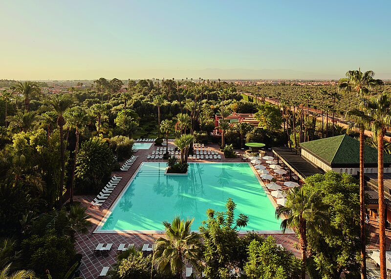 Oriental splendor paired with the highest level of hotel comfort, plus the absolute best location in the middle of a huge garden in the old town in the immediate vicinity of the city's most beautiful sights such as the famous Koutobia Mosque, the Medersa Ben Youssouf Koranic school and the magnificent Al-Badi Palace - that is what La Mamounia offers. Opened in 1923, the grand dame of all Moroccan luxury hotels was given a glamorous makeover by star architect Jacques Garcia in 2009 after years of a multi-million euro facelift. While La Mamounia belongs to the Moroccan railroad company and the city of Marrakech, today's King Mohamed VI has created his own hotel monument with the Royal Mansour using the greatest possible craftsmanship.