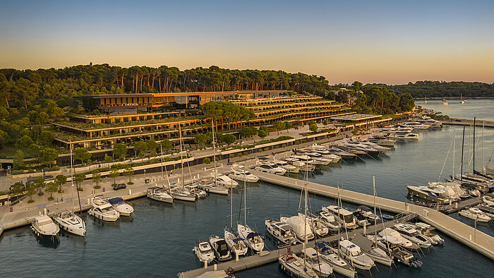 At the Grand Park , views of the city and the sea take center stage—through the glass facades, light falls on stone, water, and the silhouette of St. Euphemia’s Church, while the scent of the kitchen drifts almost imperceptibly into the lobby. The hotel sees itself as a refuge with cascading architecture: 198 rooms and eleven suites, nestled between the park forest and the marina, with a strong sense of materials and tactile quality—wood, glass, and textures that echo the landscape. Within this setting, the Grand Hotel Rovinj’s two fine-dining restaurants are precisely placed focal points that stand out from the crowd with their unique characteristics: Cap Aureo high up on the fifth floor, Agli Amici Rovinj down on the Lungomare Plaza promenade.