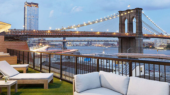 This new style oasis from the Cipriani family promises more than just spectacular views . Here you can enjoy first-class service, state-of-the-art facilities and elegance in every detail, while the view sweeps over the East River and the breathtaking silhouette of the New York skyline.