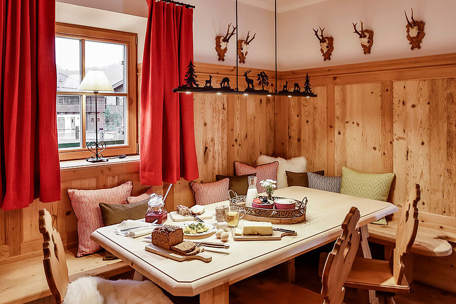 bayerischer Landhausstil im Stammhaus, dem Steinbacher Hof und im Chalet-Dorf