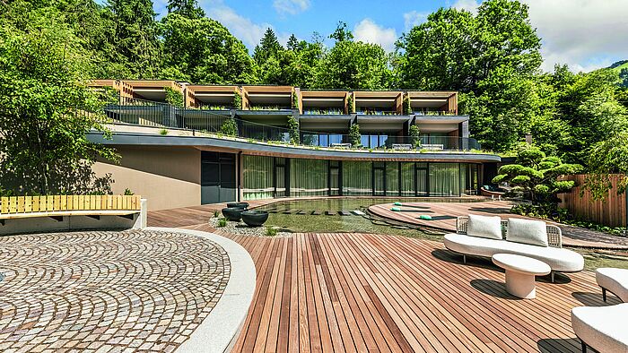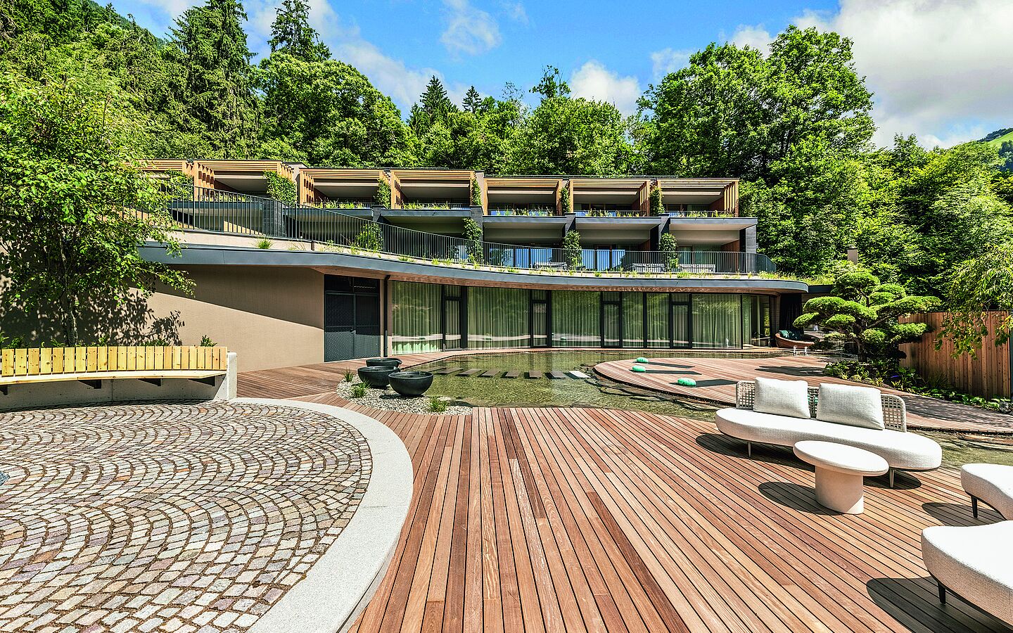 Since last year, the Hotel Alpenschlössel has been presenting itself with a modern new building constructed entirely from natural materials. Surrounded by nature, 16 modern suites spread over two floors and the new natureSPA have been created. Here, the new (treatment) concept is aligned with the changing seasons and the forces of nature. The goal is to ground oneself and deeply experience nature. Through conscious tension and relaxation with and in nature, overall well-being is intended to be enhanced.