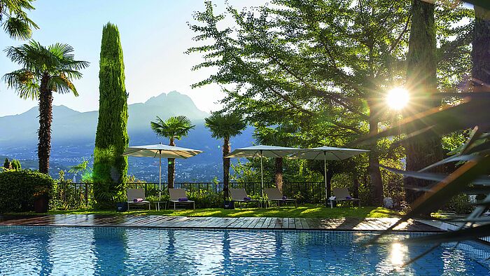 High above the spa town of Merano, on the sunny Panoramahill in Marlengo, lies a prime location with sweeping views: The Parkhotel Marlena S delights guests with an unparalleled panoramic view over the rooftops of Merano and the imposing mountains of South Tyrol.