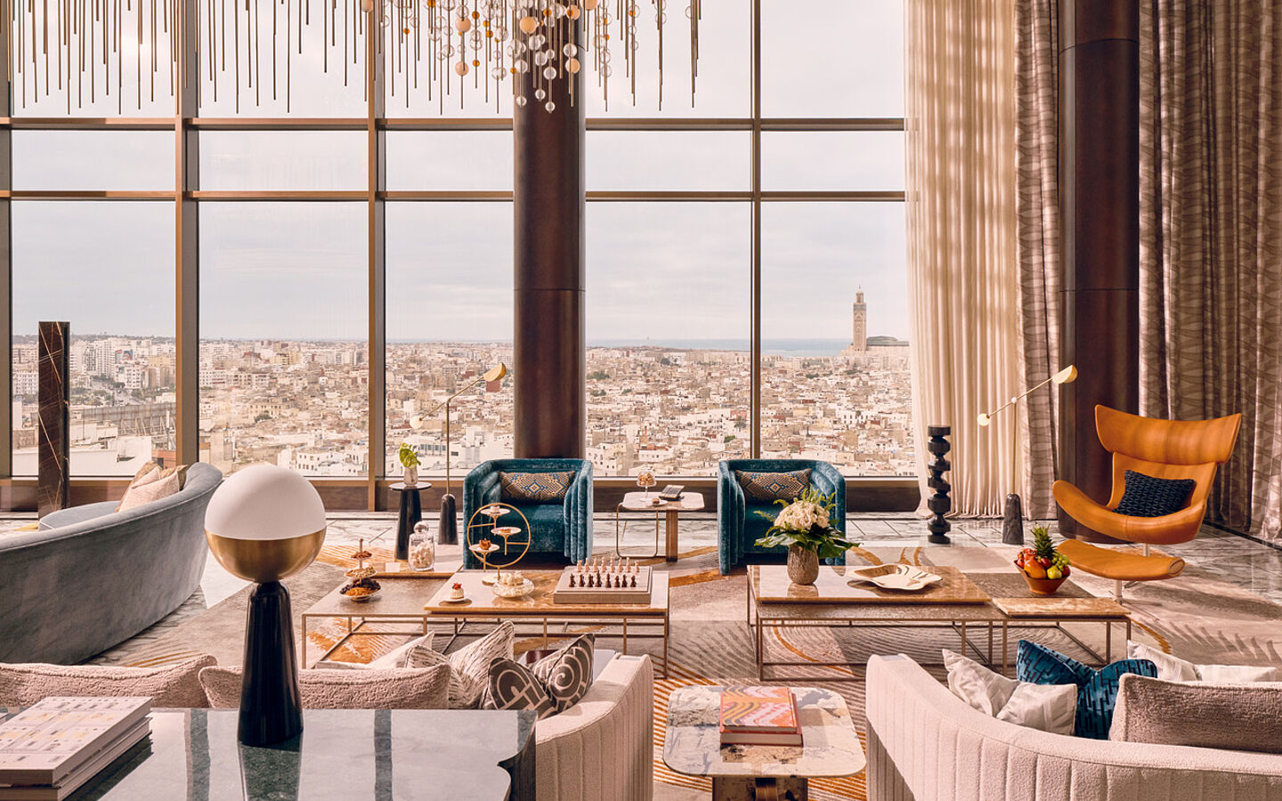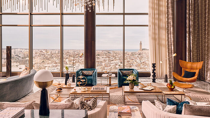 Mit der Eröffnung des Royal Mansour Casablanca begann 2024 ein neues Kapitel. In einem legendären Baudenkmal aus den 1950er-Jahren – einst Treffpunkt der Weltprominenz – verschmelzen Moderne und Vergangenheit. Nach acht Jahren Restaurierung erhebt sich das Haus heute im frischen Glanz über der Stadt. 149 Zimmer, Suiten und Apartments im neu interpretierten Art-Déco-Stil verteilen sich über 23 Etagen. Die Krönung ist die Suite Royale: ein urbaner Palast mit vier Schlafzimmern, Kino, Fitnessraum, Hamam, Spa und einem hängenden Garten in der 24. Etage. Die vier Restaurants des Royal Mansour Casablanca prägen die gastronomische Landschaft der Stadt neu: