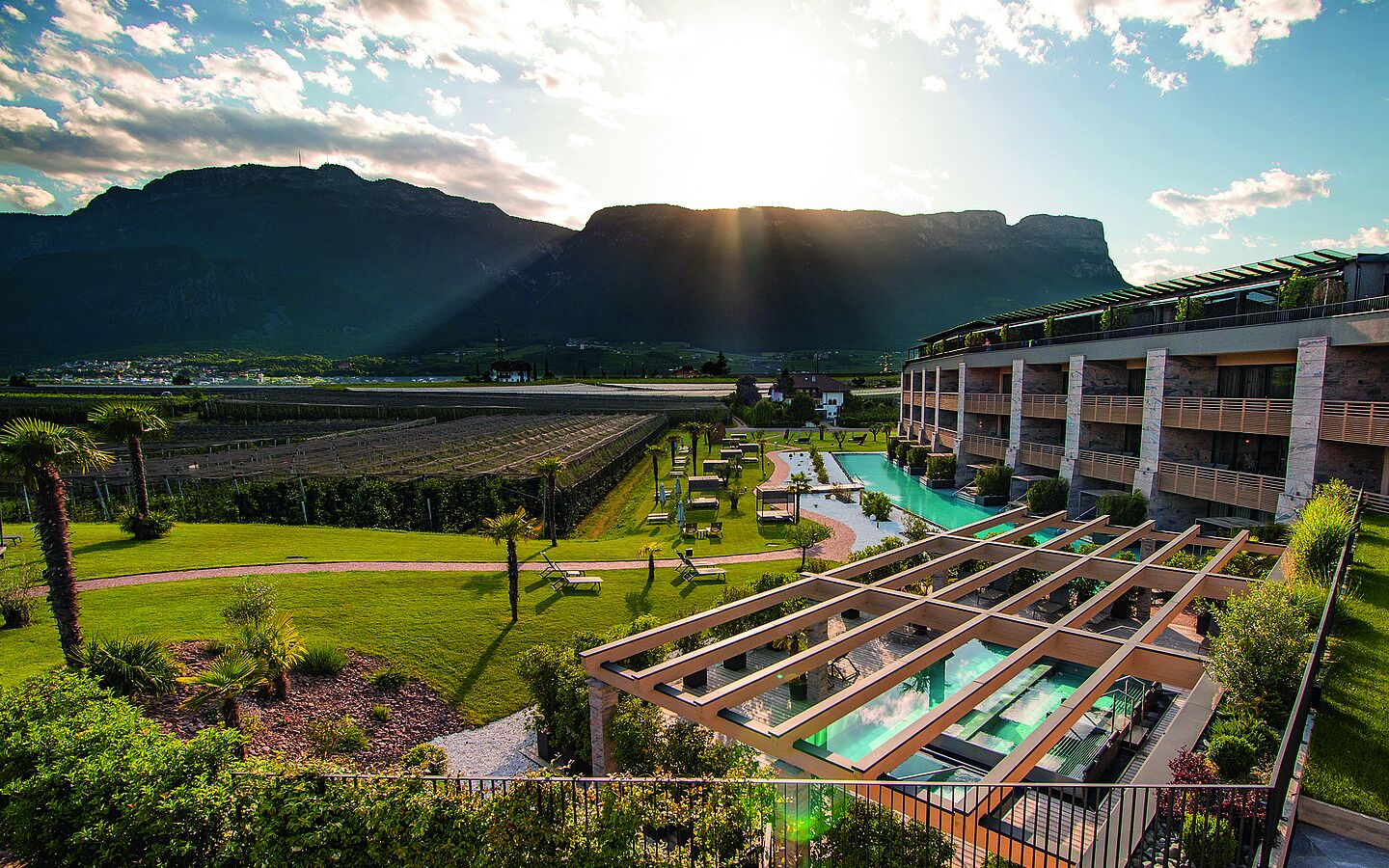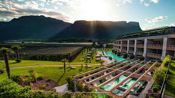The adventure pool with a white sandy beach creates a true vacation atmosphere. The 1,700 m² Wellviva SPA, featuring panoramic saunas, steam baths, a SnowRoom, stylish relaxation areas, and private treatment rooms, forms the heart of this luxury hotel in South Tyrol. Nature-inspired spa treatments, yoga and wellness programs, as well as the innovative IHHT oxygen cell therapy, provide renewed energy and deep relaxation. The offering is complemented by the Weinegg Apartments, located just 100 meters from the resort. The stylish apartments, featuring a private Finnish sauna, designer kitchen, and private heated pool, offer maximum privacy. Guests enjoy all the amenities of this wellness resort year-round; long-stay accommodations are also available in winter. Sophisticated gourmet cuisine, personal warmth, and an exclusive ambiance make the Weinegg Wellviva Resort one of the leading spa hotels in South Tyrol—for sustainable relaxation at the highest level.