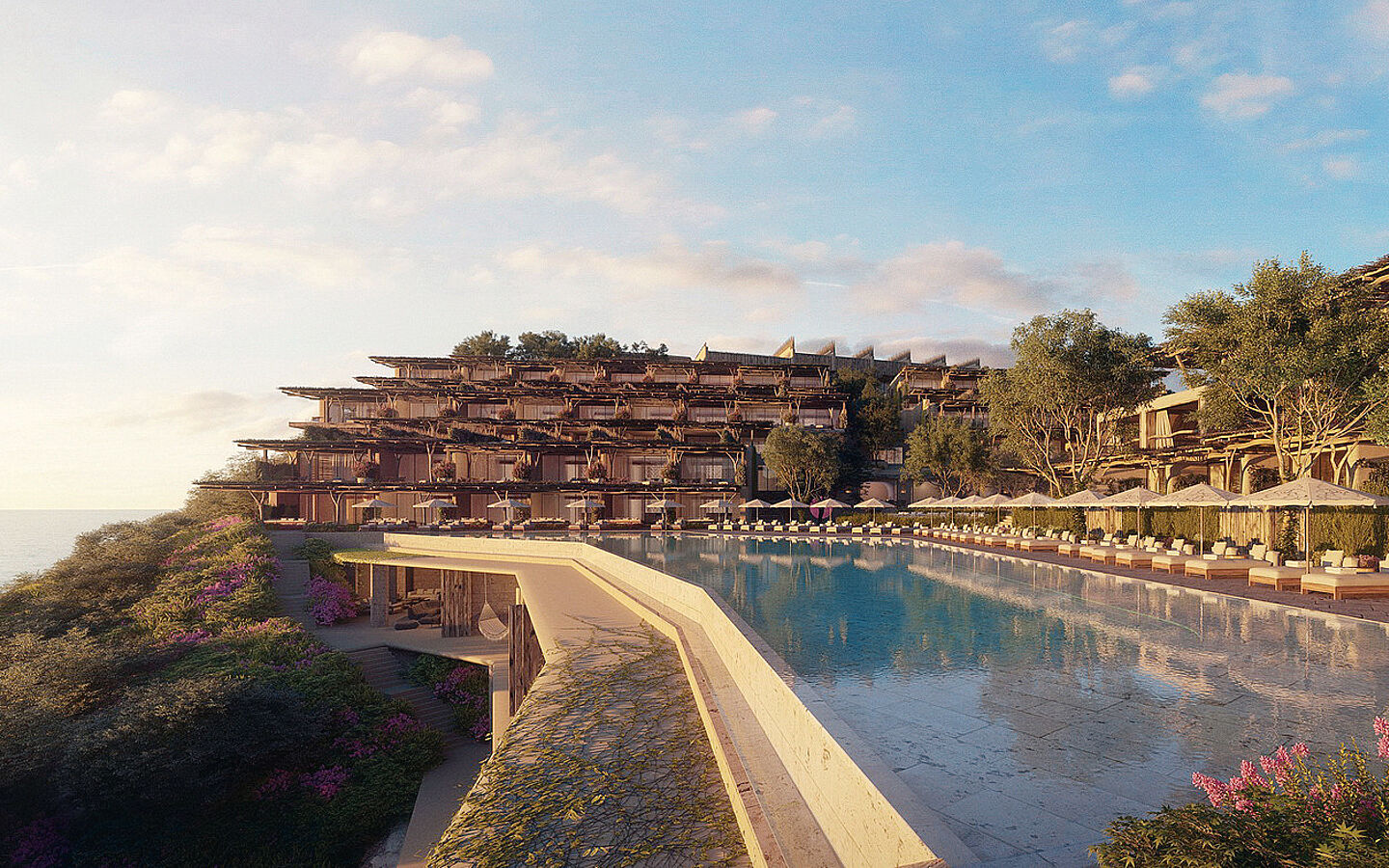 Through the fusion of traditional construction methods with modern design, an estate of 116 suites as well as beach and pool villas was created on the eight-hectare site, which harmoniously follow the contours of the bay. Guests who wish to stay for more than just a short time also have the option of purchasing a Village Residence with terrace, garden and pool.