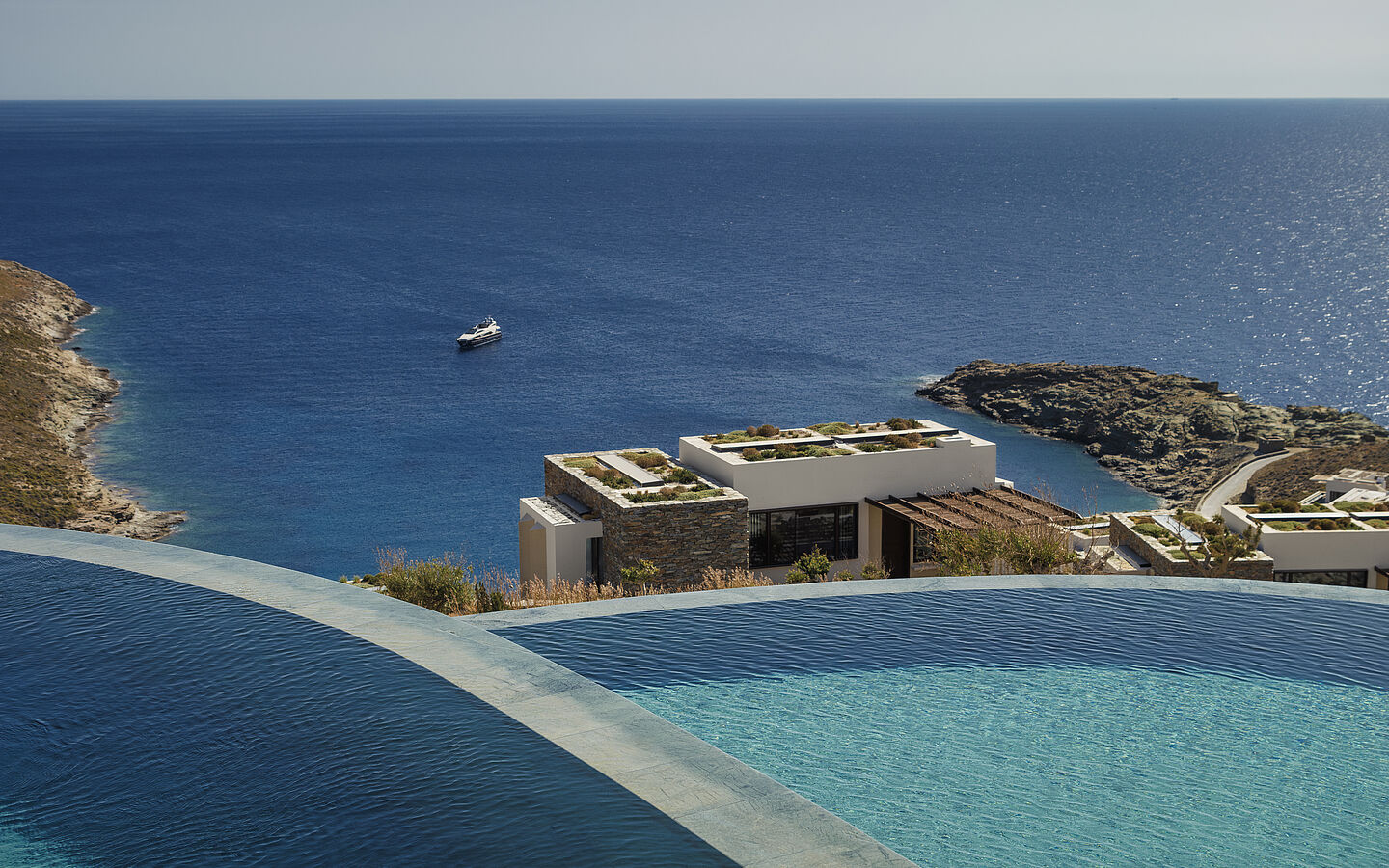 Summer on Mykonos can also mean peace, sun and a sweeping view over the Aegean - at least at the Myconian Panoptis Escape from the Myconian Collection. Situated high above a sheltered bay near Elia Beach, the villa ensemble offers a private retreat away from island life. The villas with their modern, natural design open out onto terraces with a pool or jacuzzi and invite you to relax and unwind. Individual in-villa treatments, yoga at sunrise and Mediterranean cuisine with fresh fish and regional ingredients in the in-house restaurant underline the decelerated concept. Yacht or helicopter excursions are available on request for explorations - at your own pace.