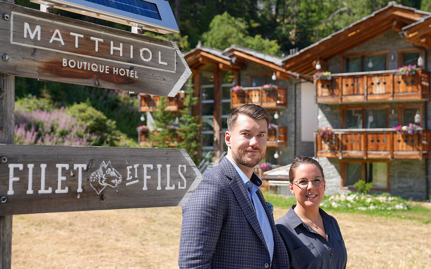 Anyone arriving at the Boutique Hotel Matthiol quickly realizes that a very special host couple is at work here. Dennis and Mareike Szelkowski, the new faces of the hotel since July 2022, have not only anchored themselves in Zermatt, but also in the hearts of their guests. Both come from Germany, both have international hotel experience and both share the same vision: to create a small hotel that allows real closeness. Here, on the edge of Winkelmatten, where the forest begins and the Matterhorn peeps through the treetops, the couple live out a form of hospitality that has become rare today: personal, attentive, present. In the mornings, you can meet Mareike at reception, in the evenings Dennis personally serves you at your table in the Filet et Fils restaurant - this is exactly what makes the Matthiol an oasis: a place of strength for those who are looking for peace and quiet, appreciate quality and want to feel the warmth of two people who run their hotel with genuine passion.