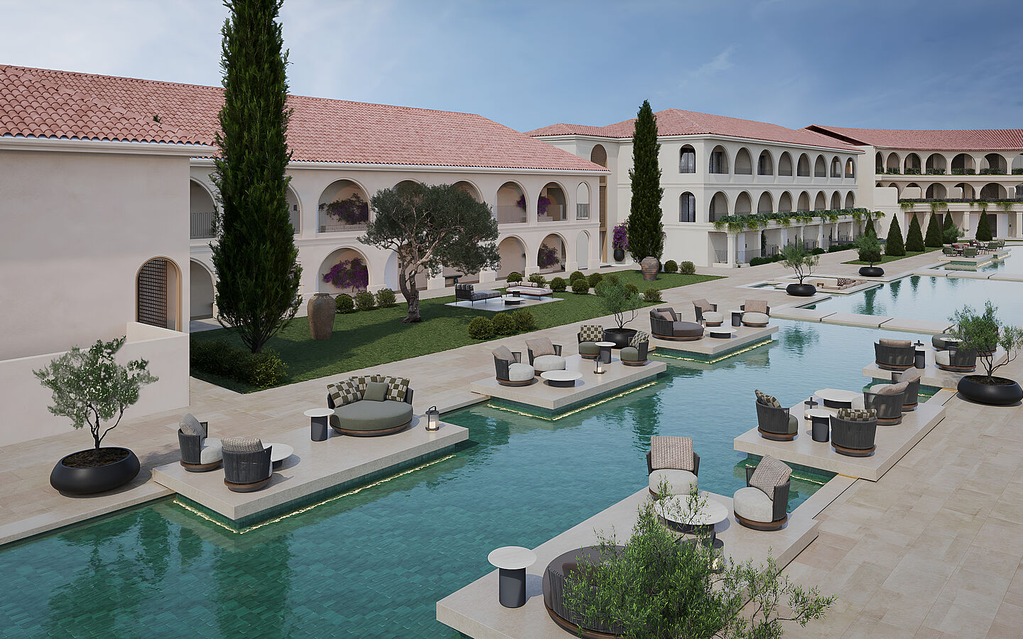 The Conrad Corfu will open next summer on the quiet south coast of the "in" island - and set new standards in terms of "Ionian Luxury". All of the 136 rooms, suites and villas have sea or garden views, and some also have private pools. Travertine, terracotta and soft shades of green as the dominant materials and colors transport the look and feel of the hotel complex, which first opened in 1986, into the 21st century with skill and luxury. A 200-meter beach and heated pools create a resort that combines relaxation and discovery. The focal point of the Conrad Corfu is the Aqua Piazza, around which three restaurants, two bars, a spa, kids' club and an open-air cinema are grouped. In culinary terms, the resort works with one of Greece's most exciting creatives: Michelin-starred chef Alexandros Tsiotinis is responsible for both the fine dining offering and the Beach Club.