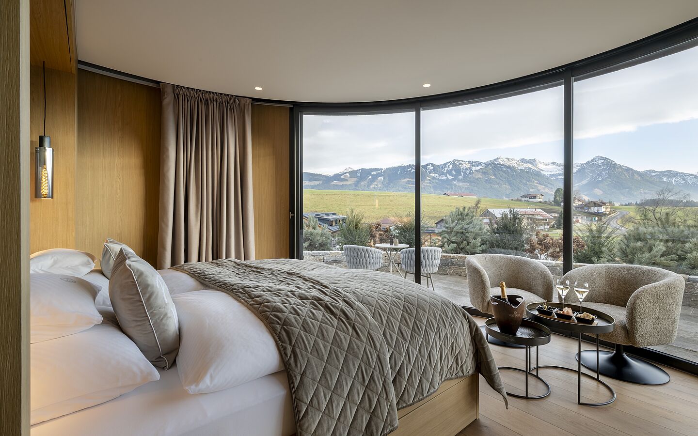 The Allgäu Alps show themselves from their most beautiful side. At the top of the Ofterschwanger Horn, an impressive mountain backdrop opens up, and at the Sonnenalp, guests can enjoy the special tranquillity and vastness of nature. In the midst of this unique environment, the 5-star Sonnenalp resort opens a new chapter: In recent months, five new NaturLodges have been built on the sunny southern slope of the Sonnenalp - exclusive hideaways made entirely of wood, with large panoramic fronts and a cozy, natural feeling. "Our new NaturLodges are a project close to my heart," says Sonnenalp Director Anna-Maria Fäßler. "They are retreats that focus on the feeling of private living - surrounded by nature, but with all the comforts of a 5-star resort."