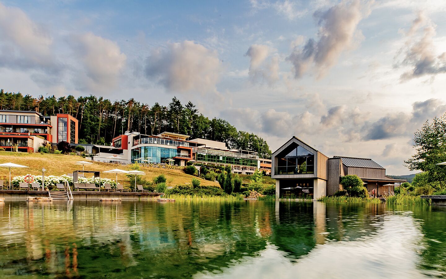 First active in the Palatinate Forest, then relaxing in the wellness world - the perfect autumn rendezvous PFALZBLICK WALD SPA RESORT beckons for the perfect autumn rendezvous. Located in the heart of the UNESCO biosphere reserve, the completely renovated hotel offers those seeking relaxation the perfect setting to leave everyday life behind and recharge their batteries for the cooler season. The recipe: short hiking excursions on premium hiking trails, plus cozy moments in the hot rooms of the sauna island in the middle of the natural swimming pond, underwater massages in the warm outdoor infinity pool and upscale, regional delicacies in the "Genussmarkt". The relaxing time-out is rounded off with revitalizing massages and yoga sessions.