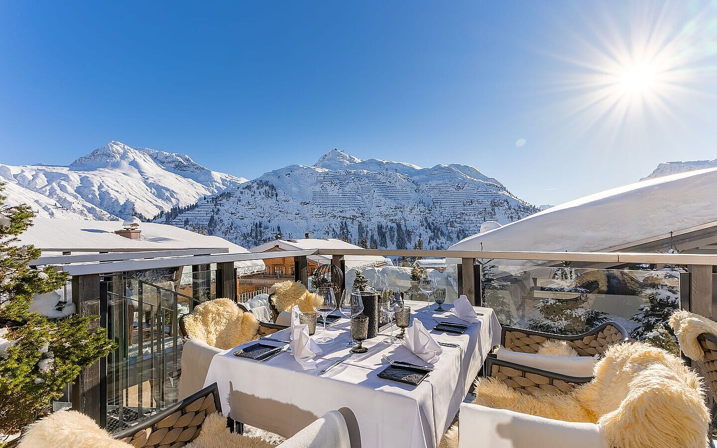 A real highlight is the sun terrace - a meeting place for connoisseurs and sun lovers. At lunchtime, it becomes a lively hotspot: champagne on ice, fresh oysters, juicy steaks and Mediterranean creations, served amid glistening snow and warming winter sun.