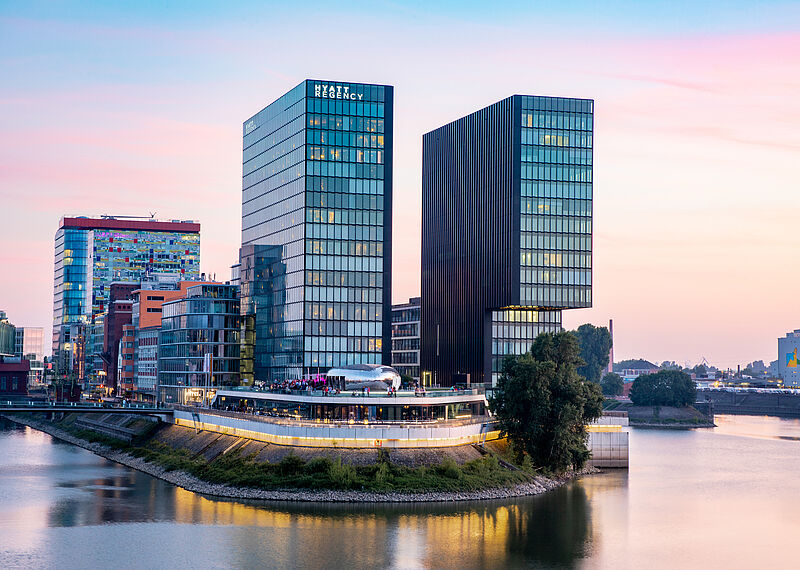 An der Spitze der Halbinsel glänzt das Hyatt…