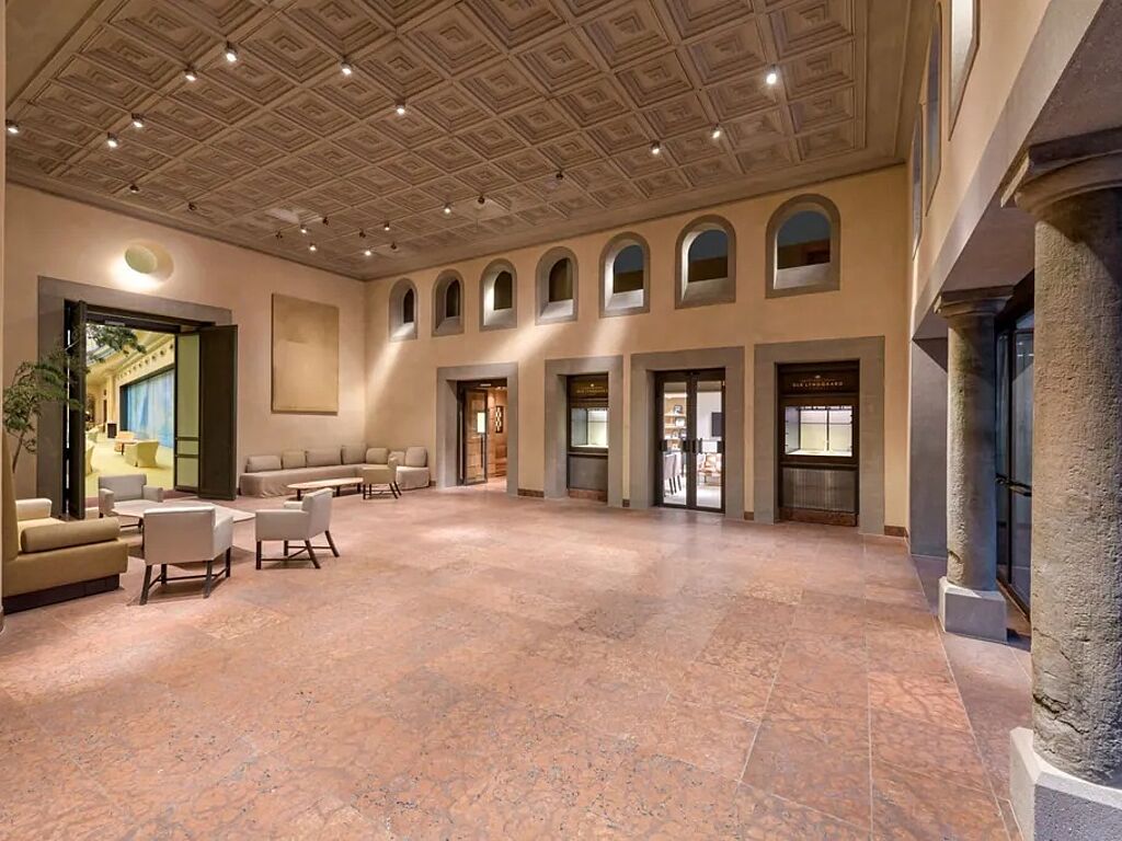 Innegrit Volkhardt, the fourth generation to run the hotel, also knows that you always have to look to the future. In a six-month construction phase from June to December 2025, the central reception area was redesigned at a total cost of four million euros. The project marks the tenth collaboration between the traditional company and Belgian interior designer Axel Vervoordt. When choosing the furnishings, the focus was on naturalness and historical techniques. The floor made of natural Hungarian red stone was retained and supplemented with material from the last active quarry in Hungary - a stone that is traditionally found in sacred and feudal buildings in southern Germany.