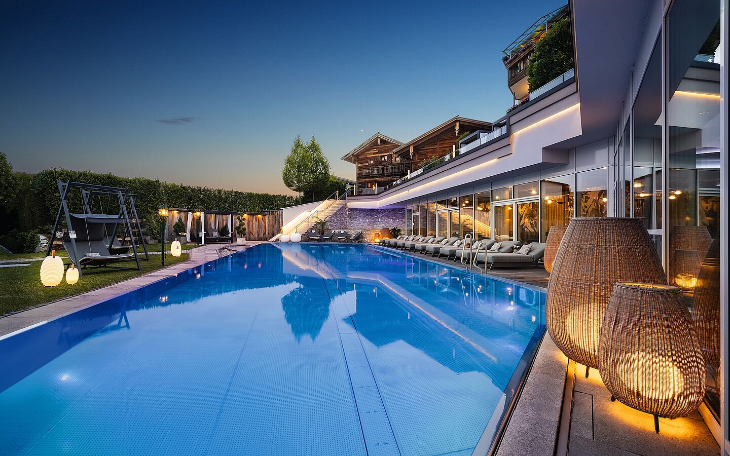 Insbesondere die 18 Luxus- und 3 Penthouse-Suiten in den Größen 60 – 230 m² sorgen für ein außergewöhnliches Relaxgefühl. Ein ausgeklügeltes Farbdesign und edle Materialien tragen dazu bei, dass sich die Gäste hier rundum wohl fühlen. Ein Zuhause auf Zeit soll hier vermittelt werden, nur wesentlich luxuriöser als daheim. Eine gemütliche Couch gegenüber einer Kinowand lädt zu einem schönen Filmabend ein. Zu jeder Suite gehört eine private Loggia mit einem Whirlpool. Das Zimmer zu verlassen lohnt sich aber gerade abends auf alle Fälle, denn fünf Restaurant-Stuben verwöhnen mit kulinarischen Köstlichkeiten. Selbstverständlich wird auf regionale Zutaten aus der Region für die kulinarischen Kreationen wert gelegt. Familie Ritzinger setzt hier nicht nur ein Herzensprojekt um, sondern auch neue Maßstäbe für einen Wellnessurlaub.