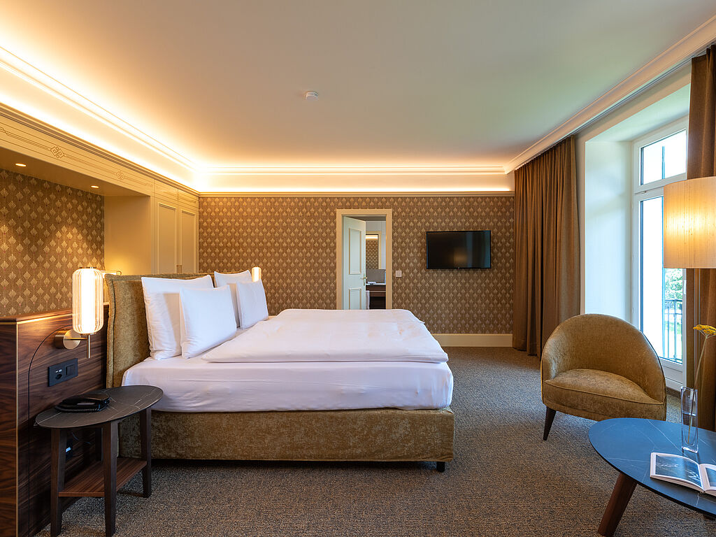 Im Jahr 2022 wurden 40 Zimmer und Suiten umfassend saniert und liebevoll im Stil des Jugendstils neu gestaltet – eine Hommage an die Ästhetik vergangener Zeiten. Pünktlich zur Sommersaison 2025 erstrahlten weitere 20 Zimmer in neuem Glanz, ebenso wie das Grand Restaurant mit seinen beeindruckenden Kronleuchtern und dem atemberaubenden Bergblick auf Trais Fluors.