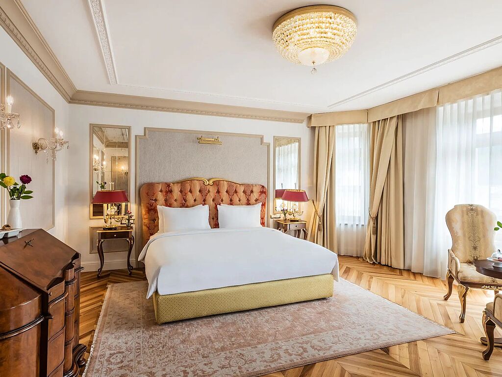 51 Zimmer und Suiten, eines prunkvoller als das andere, versprechen königliche Erholung im Wortsinn. Schwere Vorhänge, wertvolles Mobiliar, goldene Spiegel, imposante Luster, kunstvolle Perser und mehr Marmor als Wand sprechen (Märchen-)Bände. Non plus ultra unter den Luxus-Refugien: Die Royal Suite mit einer Gesamtfläche von 350 m², eigenem Salon und privatem Spa-Bereich.
