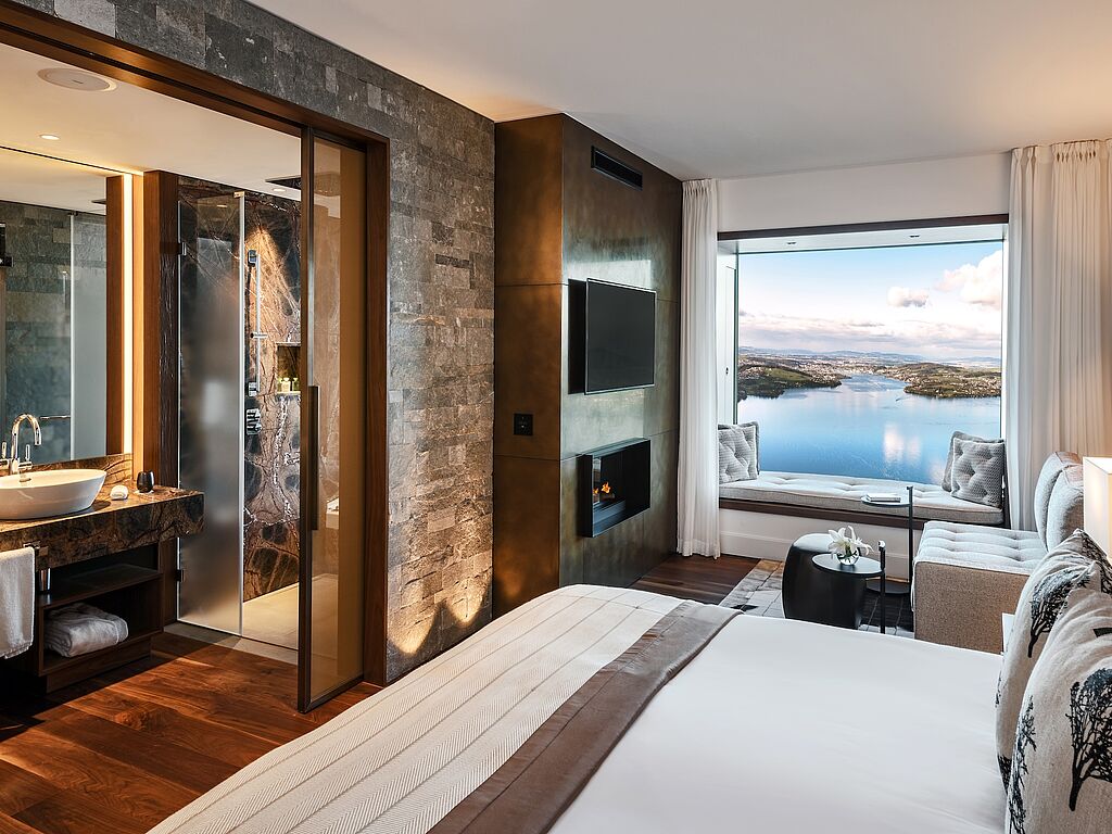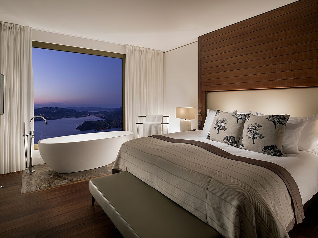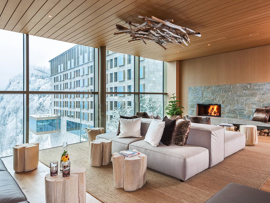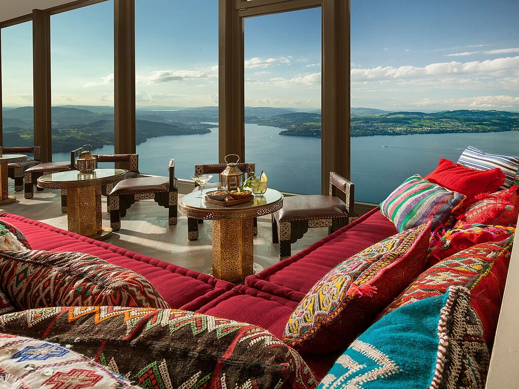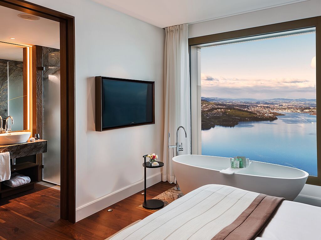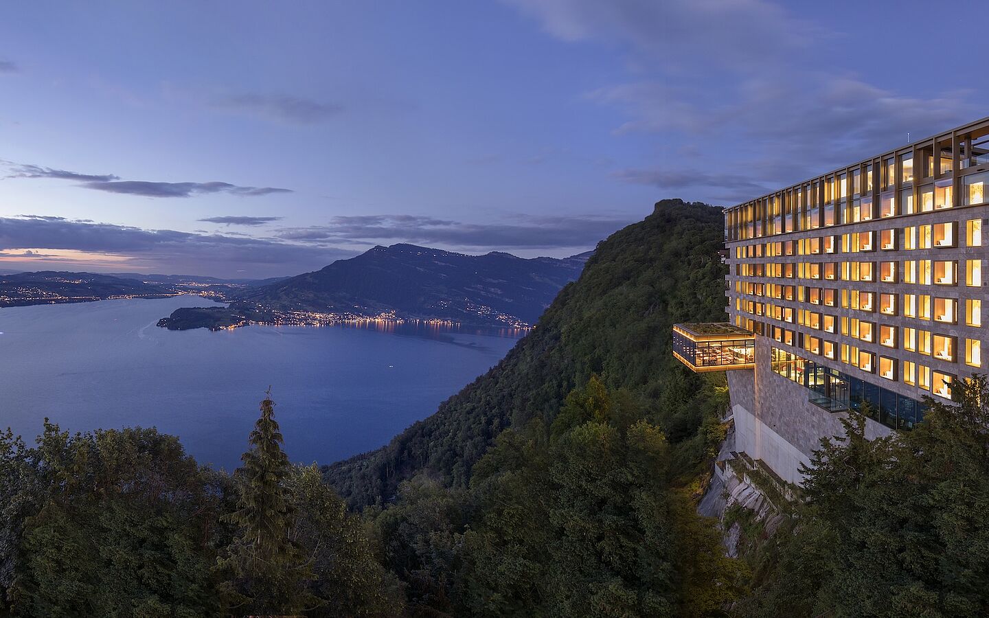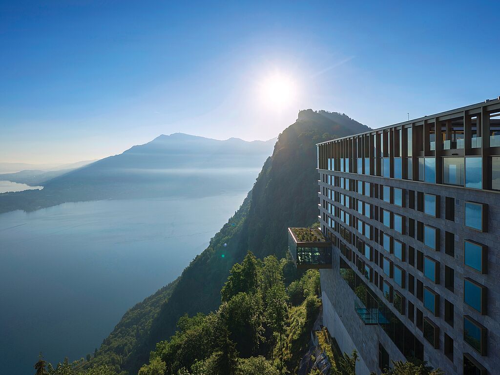 Schon allein die Anreise lässt sich außergewöhnlich gestalten. Mit dem MS Bürgenstock Katamaran nähert man sich von Luzern aus auf dem Vierwaldstättersee der spektakulären Felswand des Bürgenberges, die sich majestätisch über dem blau glitzernden Wasser erhebt. Dann geht es mit einer originalgetreu nach historischem Vorbild nachgebauten Standseilbahn auf das 500 Meter über dem See liegende Hochplateau direkt ins Herz des Bürgenstock Resort. Wer oben angekommen ist – ganz exklusiv mit Helikopter, Privatflugzeug oder mit dem Auto– findet ein Luxus-Resort vor, das eine breites Portfolio von Unterkünften eröffnet: Ende 2017 wurde die neun Jahre dauernde Renovierung abgeschlossen – das Ensemble hat seinen historischen Glanz dennoch nicht verloren.