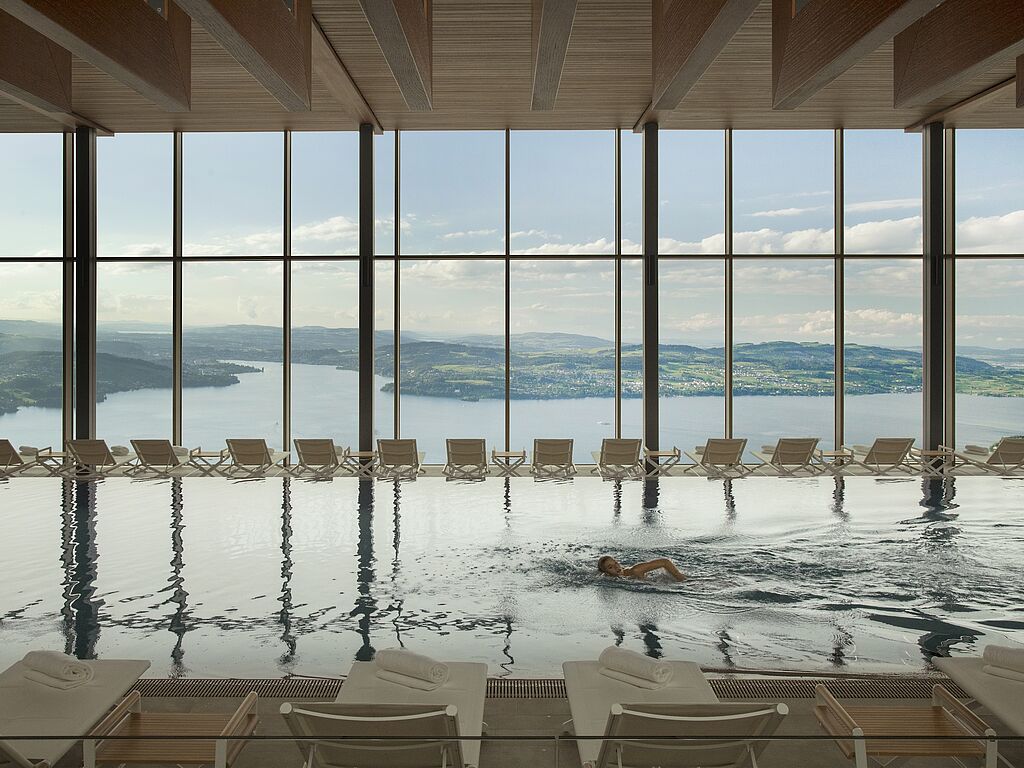 Auf einer Fläche von 10.000 m2 bietet der Alpine Spa Wellness und Wellbeing zwischen Himmel und Wasser mit faszinierendem Blick auf den Vierwaldstättersee und das Alpenpanorama . Die einzigartige Pool- und Saunalandschaft mit spektakulärem, 35 Grad warmen Infinity Edge Pool, Private Spa Suiten, Fitnessbereich sowie aussergewöhnlichen Signature Treatments begeistert Wellness-Connoisseure.