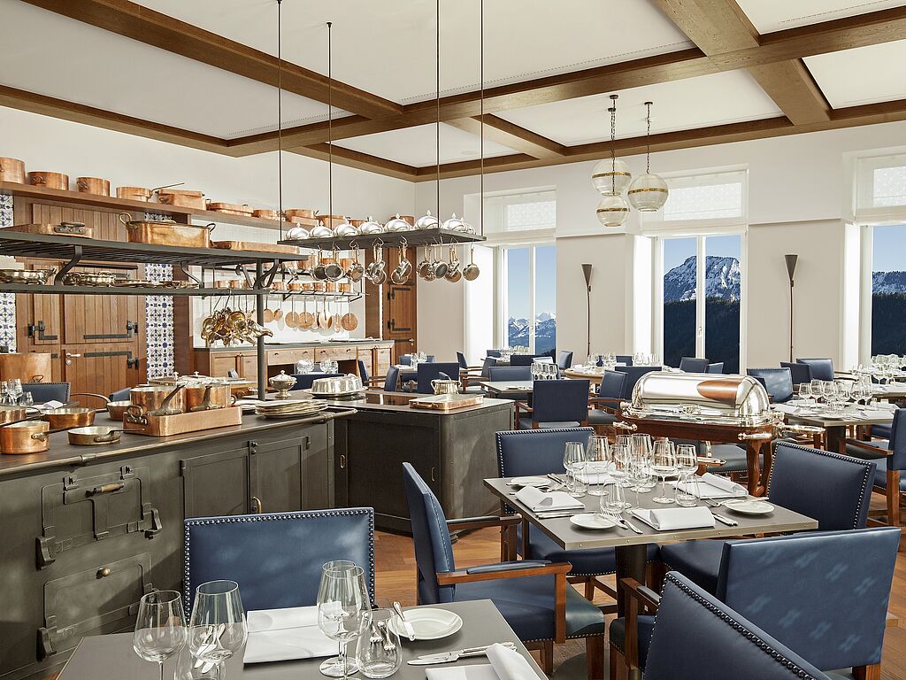Französische Gerichte mit modernem Twist gibt es in der Brasserie Ritzcoffier, eine Hommage an Cesar Ritz und Auguste Escoffier. Die Osteria Alpina, in der Audrey Hepburn regelmässig zu Gast war, thront über dem hügeligen Golfplatz. Aromatisches Fleisch und fangfrischen Fisch gibt es unter den massiven Eichenbalken im Oak Grill & Pool Patio, gelegen beim spektakulären Hollywood Pool, der Teil einer glamourösen Szene im James Bond-Film Goldfinger ist. Noch Wünsche?