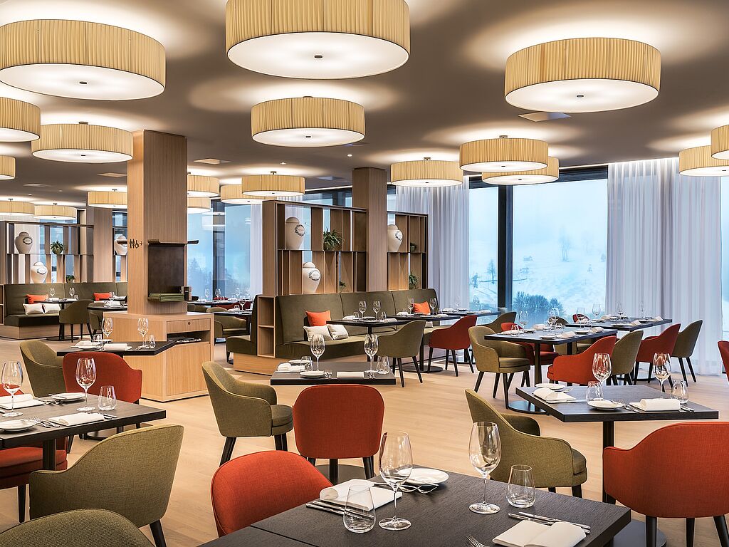 Jedes Restaurant ist atemberaubend. Das mit 16 Gault Millau-Punkten ausgezeichnete Spices Kitchen & Terrace befindet sich in einem Glaskubus, der spektakulär an der Seite des Berges herausragt. Mit offener Showküche und authentischen Gerichten aus China, Japan, Thailand und Indien ist es ein wahres Juwel für Liebhaber des Exotischen und Modernen. Parisa – Persian Cuisine sitzt am Rande der Klippe mit Aussichten, die 500 Meter in die Tiefe ragen.