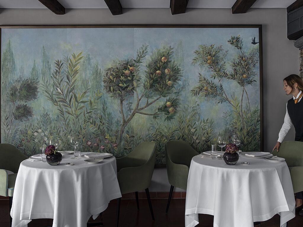 Im Gourmetrestaurant Locanda Barbarossa (18 Gault&Millau-Punkte und ein Michelin-Stern) verwöhnt Küchenchef Mattias Roock anspruchsvolle Gaumen auf höchstem Niveau. Im eleganten Tre Stagioni erfüllt Daniele Sardella, Maître d`hôtel, bei diskreter Pianomusik mit viel Freude jeden Gästewunsch. Im modernen Restaurant La Spiaggia am Privatstrand des Anwesens verwöhnt gibt's kleine, handliche Gerichte.