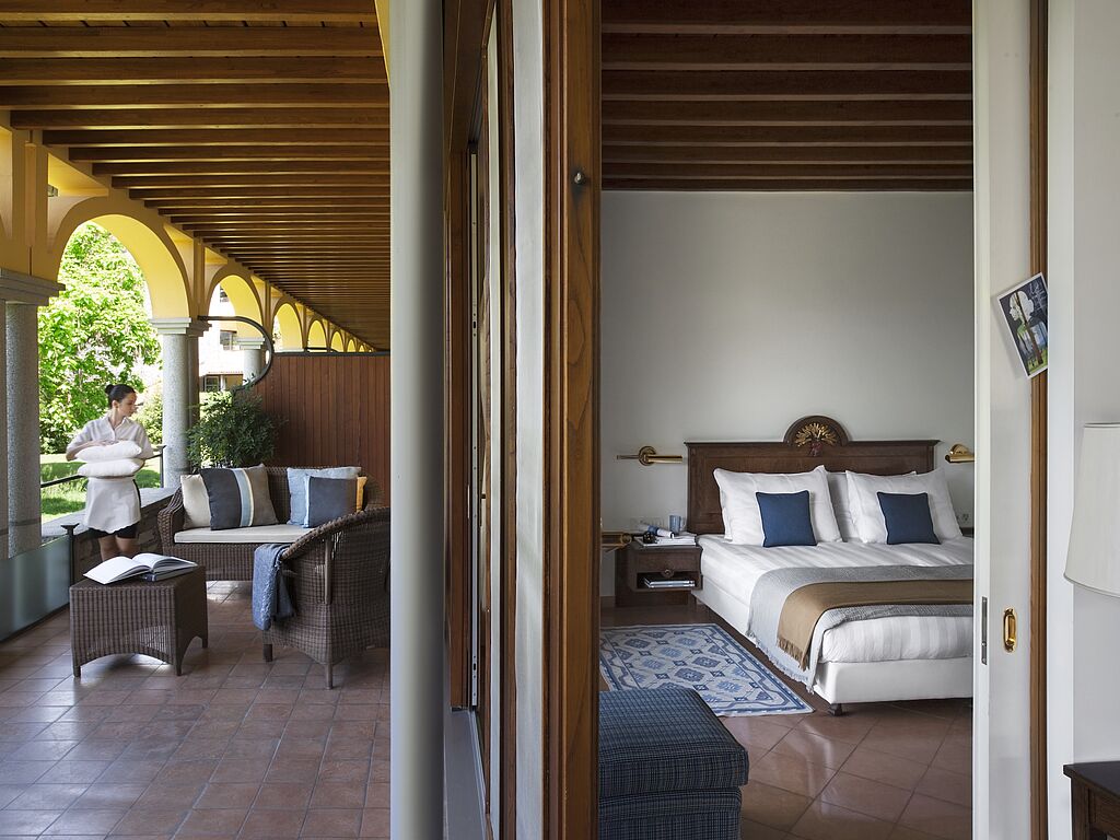 Im Bogengang lustwandeln, ein Spaziergang durch den Obstgarten, in der Sonnenliege am Privatstrand ein erholsames Schläfchen halten – Ruhe und Entspannung sind im Castello del Sole garantiert. Vereinzelt dringen Laute an Ihr Ohr: Hier zwitschert ein Vogel vom benachbarten Naturschutzgebiet, dort quietscht leise ein Tretboot auf dem See, und im Spa gluckert der Hydropool. Ansonsten gilt die Maxime: einatmen, ausatmen, Alltagsstress vergessen.