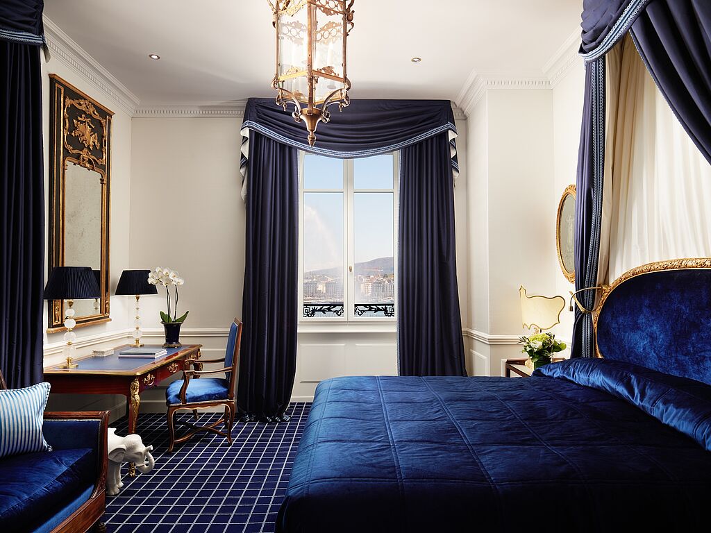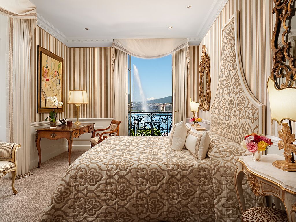 Ein besonderes Highlight bildet die legendäre Victoria Suite, die mit ihrem atemberaubenden Blick über den glitzernden Genfer See einen Ort unvergleichlicher Ruhe und Privatsphäre bietet. Die Suite, oft als „Krone des Hauses“ bezeichnet, gilt seit jeher als bevorzugte Adresse für Prominente, Diplomaten und Staatsoberhäupter, die hier diskrete Eleganz und höchste Sicherheitsstandards schätzen.