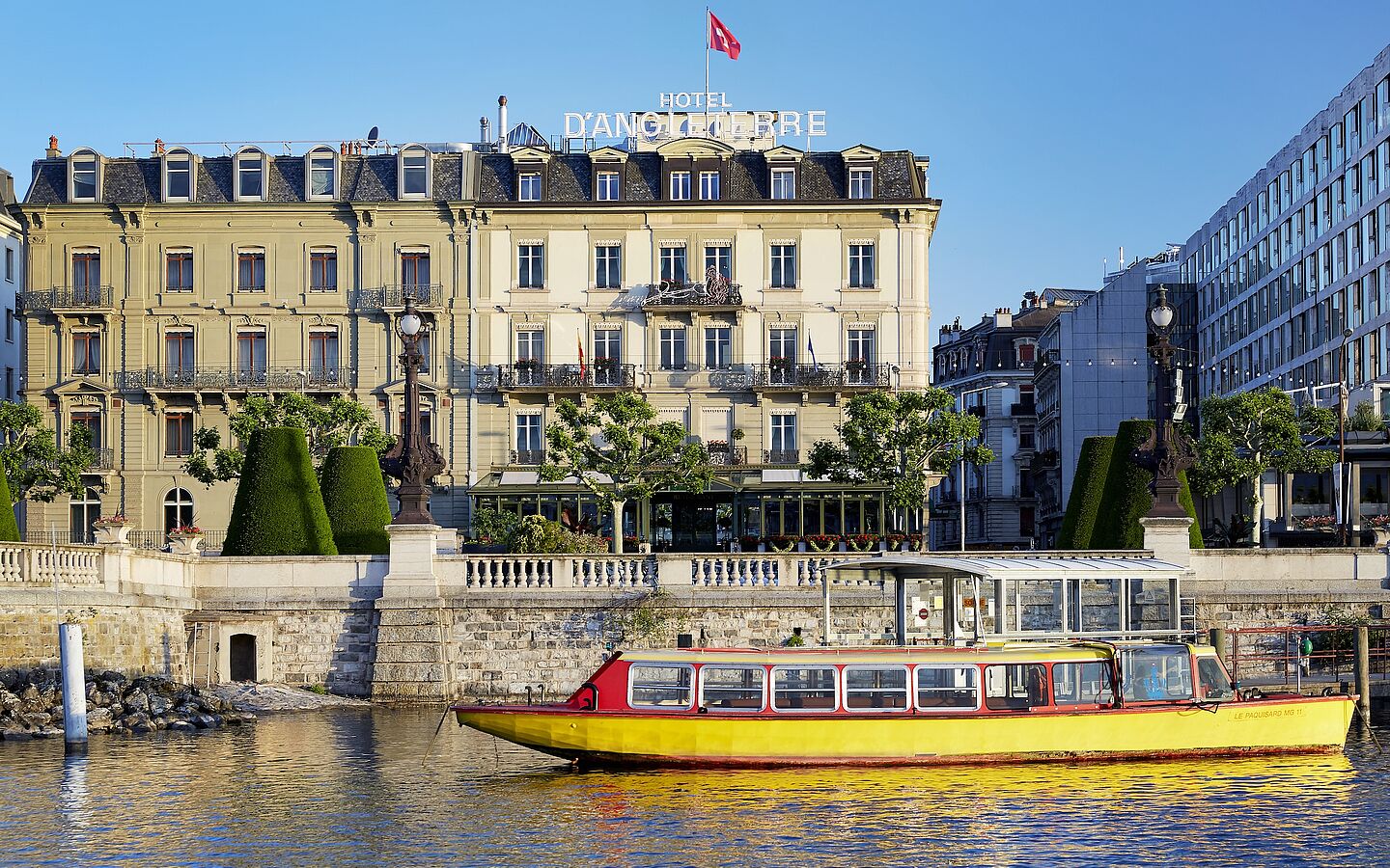 Frische Bergluft, glitzerndes Wasser und eine atemberaubende Aussicht: Das historische 5-Sterne-Haus Hotel d’Angleterre liegt direkt am Genfer See mit Blick auf das grandiose Panorama des Mont Blanc und besticht mit herzlicher Schweizer Gastfreundschaft und britischer Eleganz.