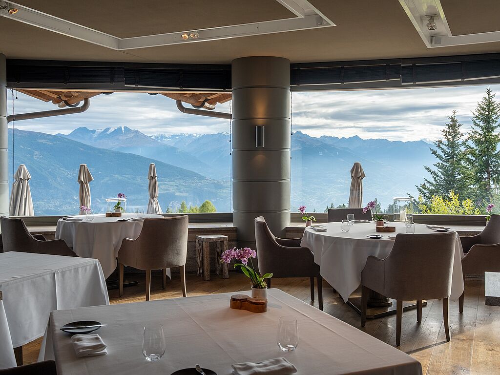 Das hauseigene Restaurant LeMontblanc – ausgezeichnet mit einem Michelin-Stern und 16 Punkten von Gault&Millau – verwöhnt Gourmetgäste mit traditionellen Wildmenüs aus regionalen Zutaten, französischen Delikatessen und verführerischen Desserts. Kreative Aufmerksamkeiten wie Zuckerwatte zum Kaffee sorgen für besondere Überraschungen. Das erstklassige Personal bietet königlichen Service – außerordentlich freundlich, nie aufdringlich und stets im richtigen Moment zur Stelle. Beste nationale und internationale Weine werden direkt aus dem Weinkeller serviert, während die große Glasfront des Restaurants die Walliser Berge zum Greifen nah erscheinen lässt. An sonnigen Tagen lädt die Außenterrasse mit Panoramablick dazu ein, einen Aperitif oder ein leichtes Mittagessen zu genießen und die alpine Landschaft in vollen Zügen zu erleben.