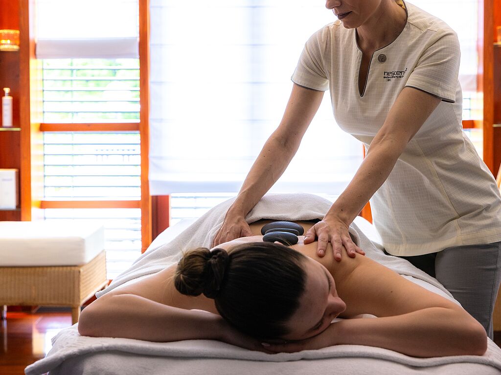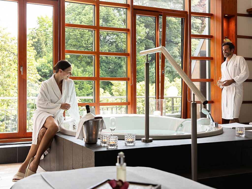 Im 5.500 Quadratmeter grossen Spa Nescens fallen alle Anstrengungen des Alltags ab. Das elegante Interieur erinnert an ein Boudoir der 40er-Jahre, kontrastiert von der malerischen Bergwelt, die man sowohl vom Outdoor-Sole-Sprudelbad als auch vom neuen Aussenpool „The Pool Garden“ aus bewundern können. Der 20-Meter lange Innenpool, die Dampfbäder, die Saunalandschaft, die Ruheräume, das Gym sowie die Massageräume mit Beauty-Angeboten sorgen für Entspannung. Die Saunalandschaft umfasst eine gemischte finnische Sauna und ein gemischtes Dampfbad, während alle anderen Einrichtungen separat für Frauen und Männer zugänglich sind.