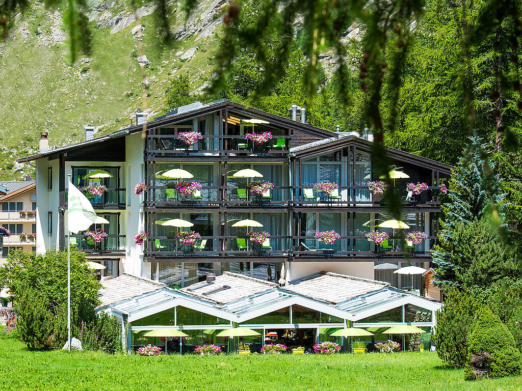 Erholungsparadies für Familien: Das an einem Lärchenwald, direkt bei den Bergbahnen von Saas-Almagell gelegene 4-Sterne-Superior-Hotel wird nicht ohne Grund “The little paradise” genannt.