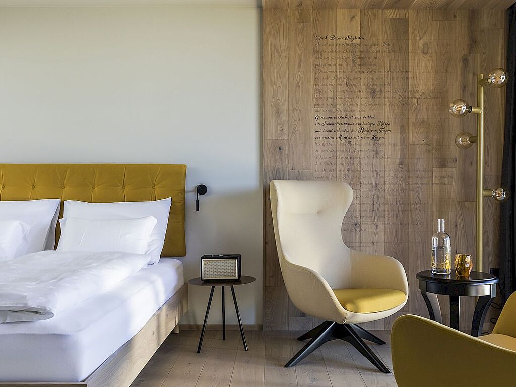 The hotel offers 25 cozy rooms and suites, ranging from charming rooms with a loggia or garden view to spacious suites with a whirlpool or private fireplace. High-quality materials, harmonious color accents and plenty of light ensure a pleasant living environment, as well as modern amenities such as high-speed WiFi and a minibar - ideal for anyone who appreciates design and comfort.