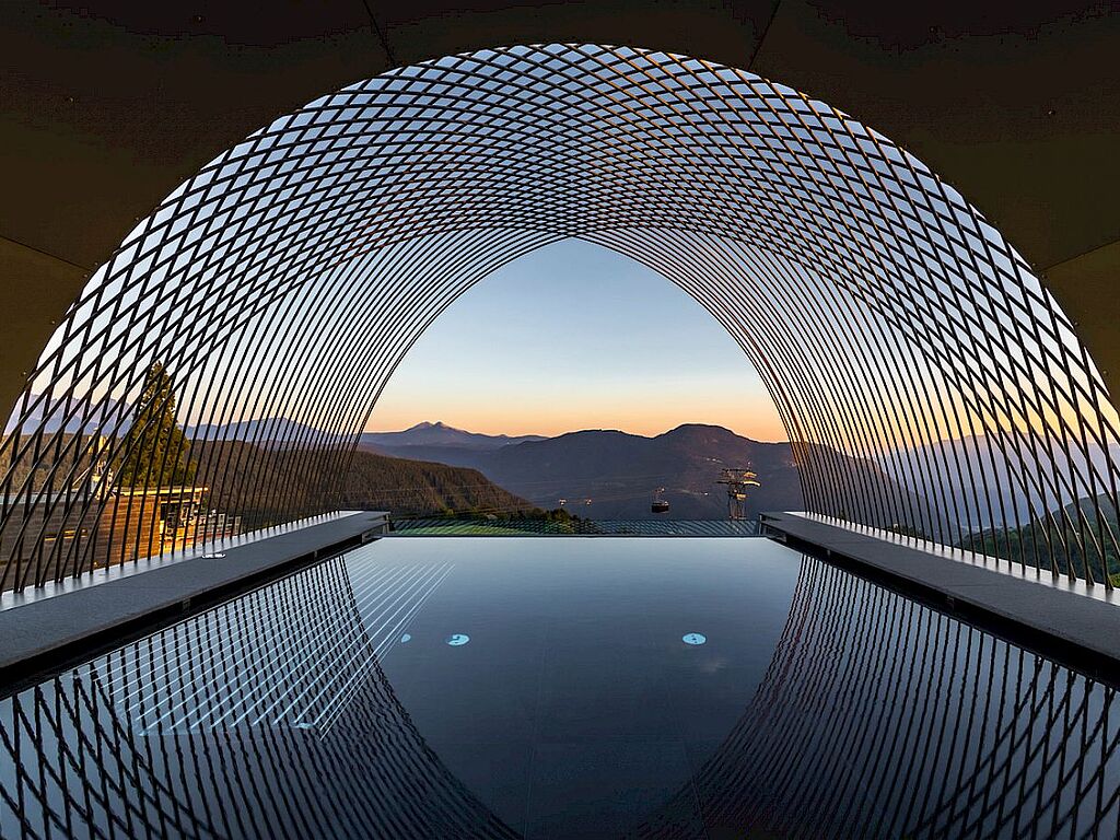 After a day in the mountains or in Bolzano's old town, the Rooftop Spa with its 9-metre-long Sky Infinity Pool, sauna and panoramic terrace invites you to relax and offers breathtaking views of the Dolomites. The Kneipp pond directly in front of the natureSAUNA provides soothing refreshment. The large XXL whirlpool not only offers soothing relaxation for tired muscles, but also a wonderful mountain view. A highlight for everyone is the 21-meter-long outdoor family pool.