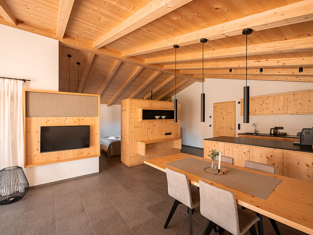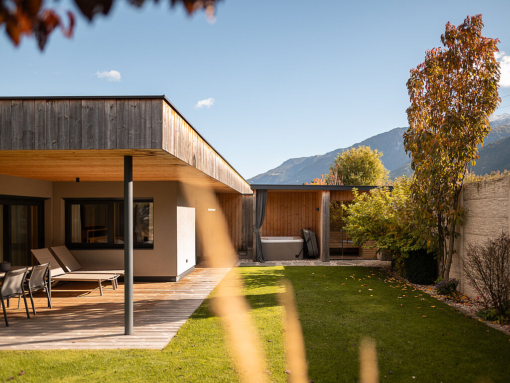 Between apple trees, vineyards and mountain peaks lies a stylish snail house that offers plenty of space, privacy and excellent service: the Kaserer family's Amolaris in Goldrain.