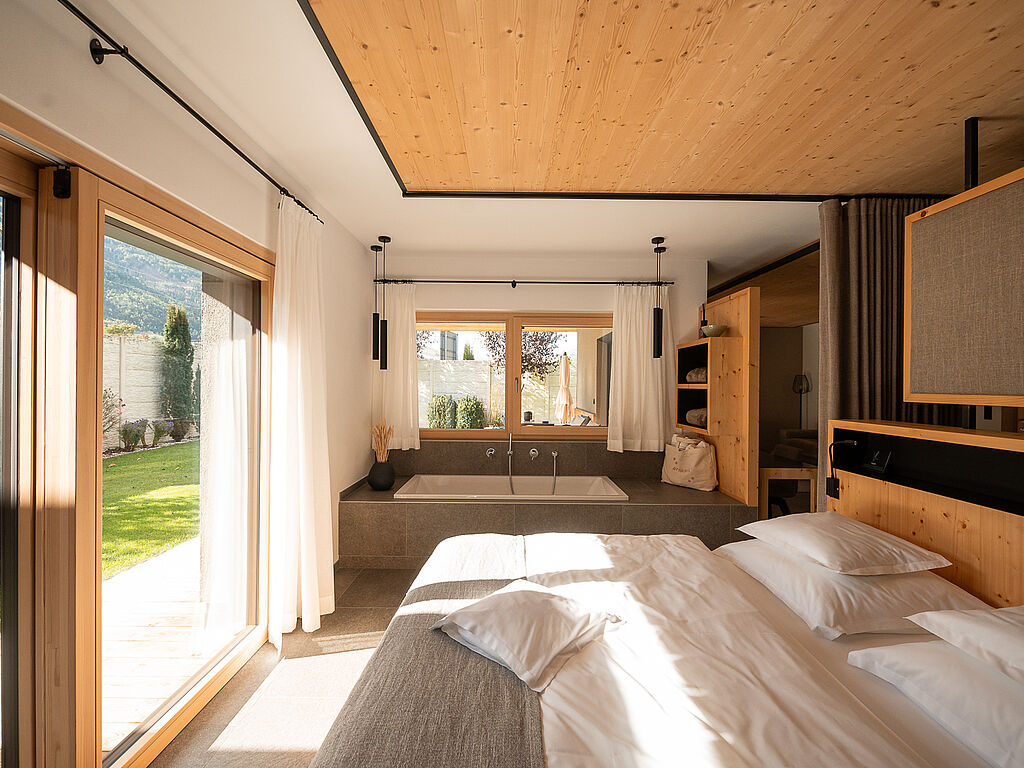 The furnishings are elegant and timeless, the clear lines and unobtrusive design reflect the high art of restraint and create an unagitated space for personal, free development. At the heart of the Amolaris is the natural bathing pond, where you can balance your body while doing yoga in the morning. Or you can simply relax in the sun with a view of the mountain peaks. The spa with indoor pool with whirlpool and small sauna area invites you to immerse yourself in harmony.