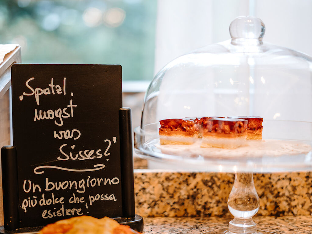 Since 2021, hungry guests have been treated to a newly conceived, extensive Adria breakfast served until noon, featuring homemade, sweet, and fresh delicacies, along with everything else a gourmet’s heart could desire. Sometimes there’s fresh yeast plait (with a view of palm trees), sometimes poached eggs (with a view of mountain peaks), sometimes light, sometimes hearty—but always fresh and prepared with care. These delicacies can be enjoyed in the sun garden, in the elegant breakfast room, or on the legendary wine terrace—guests are always spoiled for choice here.