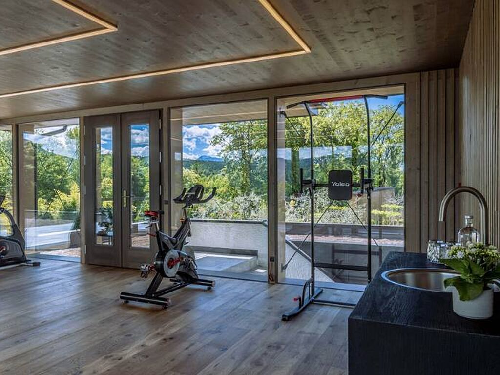 There's even more space to switch off and take a deep breath in the spacious wellness area with sauna, panorama gym, heated outdoor pool and relaxation zones surrounded by greenery.