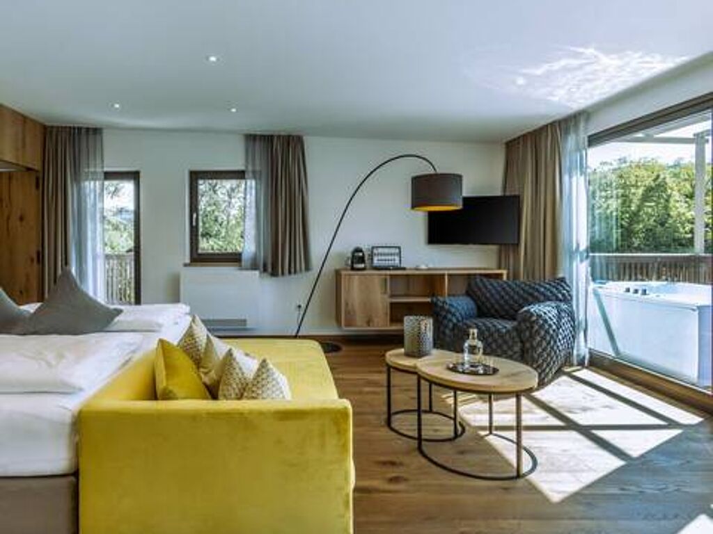 A special highlight are the wellness suites in modern design with private sauna and whirlpool on the terrace. Velvety soft fabrics and gentle natural colors soothe stressed minds, while the view of nature gives a feeling of boundless freedom.