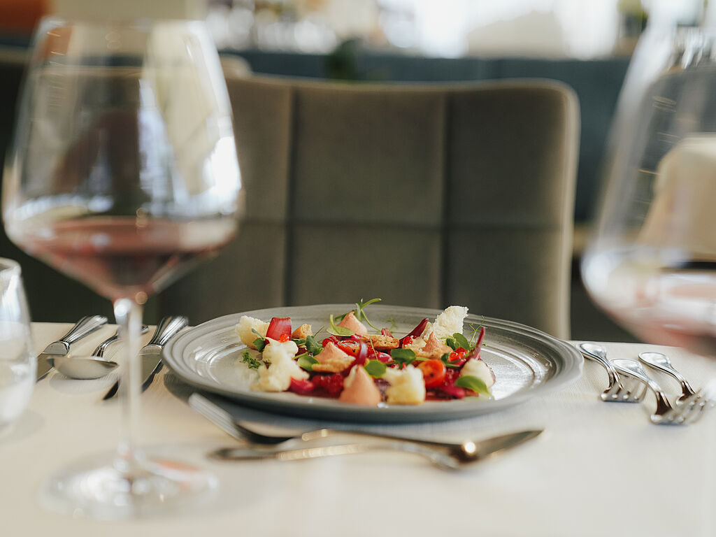 South Tyrolean delicacies grow and thrive on the hotel's doorstep. The chefs pick the fresh aromas directly from the large herb garden and skilfully conjure them up in their pots and pans. The bartenders are also happy to help themselves to mint, rosemary and basil and surprise hotel guests with creative drinks. With 300 hours of sunshine a year, there is a good chance that you can enjoy your exquisite dinner on the panoramic terrace.