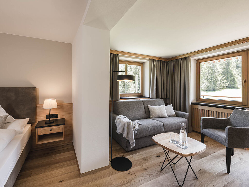 The Alpe di Siusi region in the Dolomites is the ideal vacation destination for anyone who wants to enjoy time away from the hustle and bustle. In winter, perfectly groomed ski slopes beckon, while from spring to fall, beautiful hiking trails and magnificent natural spectacles delight body, mind and soul. In this little paradise, surrounded by the impressive mountain peaks of the Schlern, Langkofel & Plattkofel and the famous Rosengarten, the charming Hotel Steger-Dellai has been welcoming its satisfied guests for decades. The long history of the Hotel Steger-Dellai began as a simple alpine inn in 1934. 13 years later, the pioneers Paula Wiesinger & Hans Steger moved in. She a ski legend, he a pioneer in mountaineering and modern ski technology. Together they renovate the former refuge from the ground up and turn it into one of the first luxury hotels in the Dolomites. The next generation has long since taken over - in the spirit of the pioneers. 43 stylishly designed rooms and suites are available and bring nature inside with local woods and warm natural materials.