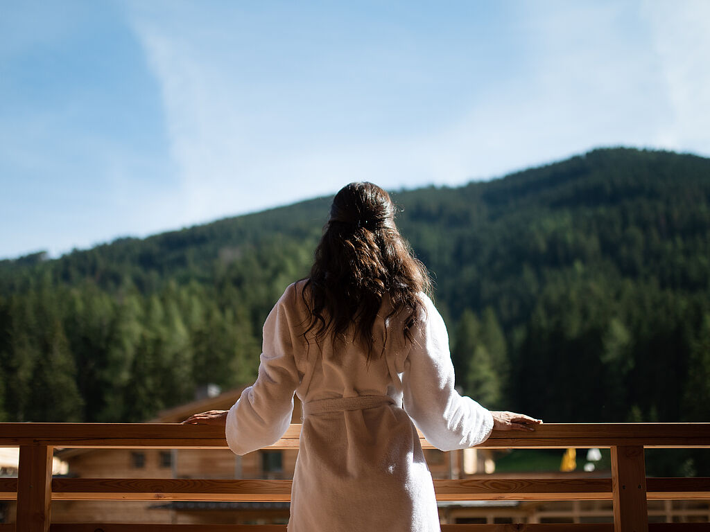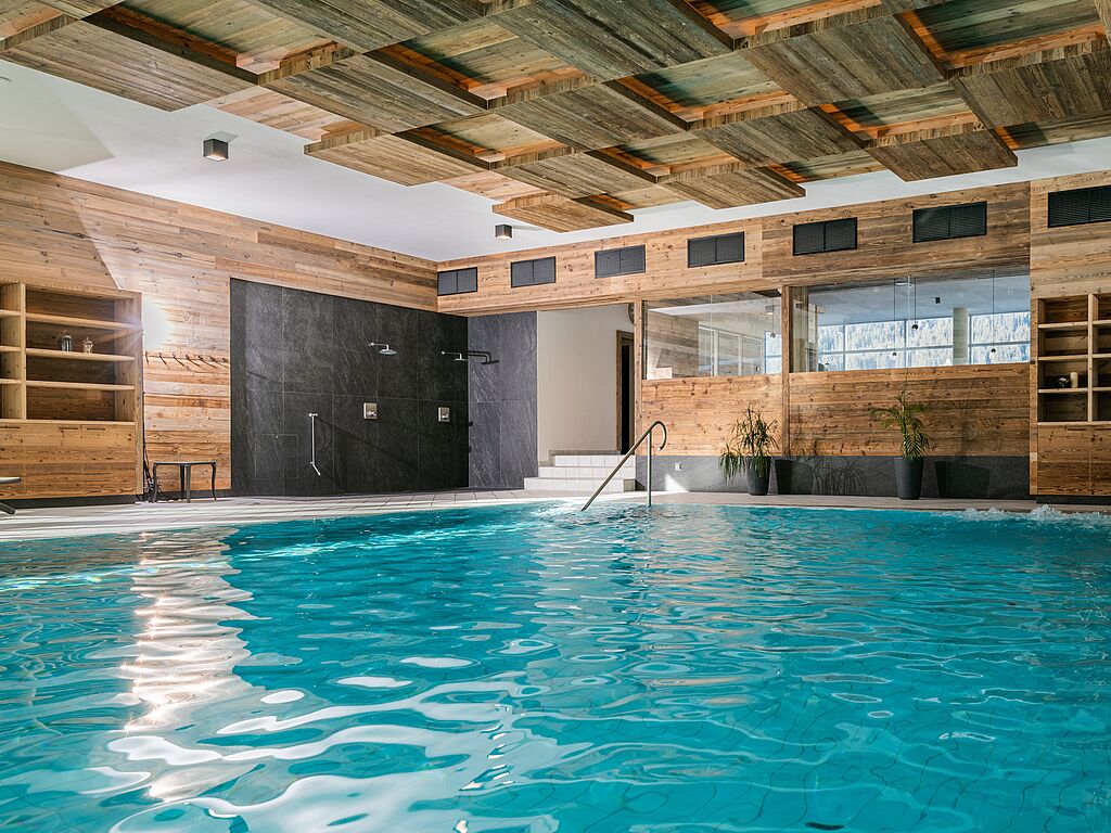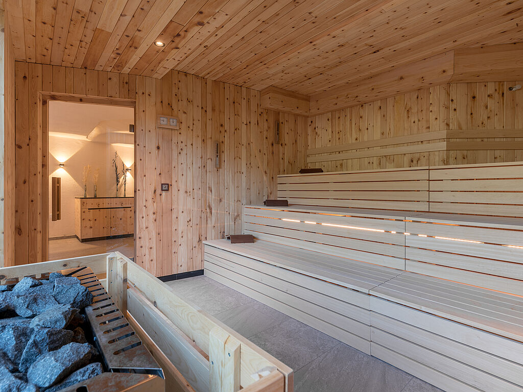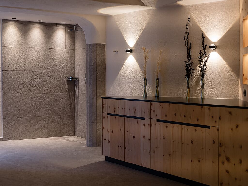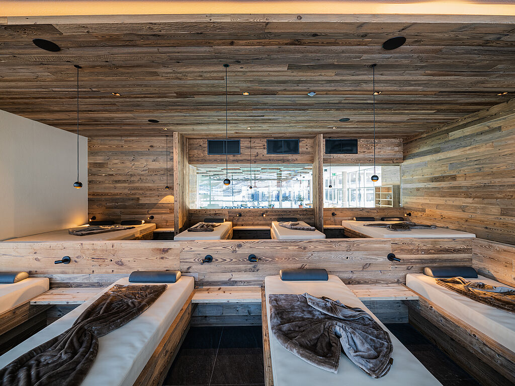 In the wellness area of the Alpine Nature Hotel Stoll, the elements of nature merge into an unforgettable symphony of relaxation. The Sky Spa opens up a breathtaking view of the mountain panorama and lets go of everyday life a little more with every second. The Finnish sauna, the bio sauna and the "Luis Trenker" infrared cabin release the body into soothing warmth that penetrates deep into the muscles and frees the mind. In the Zirm Spa, the air is transformed into pure magic: the scent of Swiss stone pine and essential oils unfolds, and the aroma steam bath, the Tyrolean Brechel bath and the relaxation lounge invite you to leave everyday life behind in layers. On the sun terrace, where the silence is almost tangible, the air vibrates in harmonious balance with every breath - a moment that gives the body new strength, like a gentle breath of Alpine spring.
