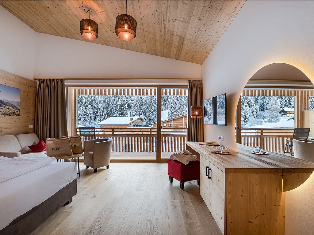 The Alpine Nature Hotel Stoll tells of the host family's close connection with their homeland. Natural materials such as wood and stone, clear lines and warm colors characterize the architecture and create an atmosphere of timeless elegance. Regionality is not explained here, but lived - noticeable in every detail, from the first impression to the last quiet moment.