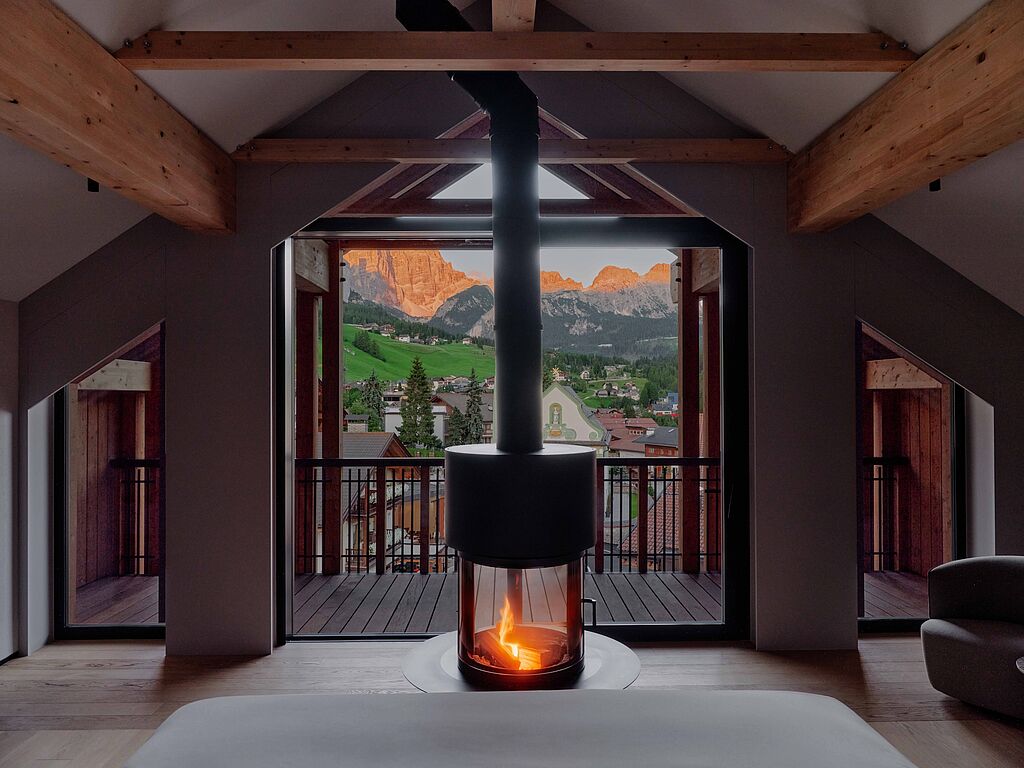 The historic mountain hotel has been carefully modernized under the direction of architect Jean-Michel Gathy. Wood-clad façades, dark metal elements, large windows, natural materials such as wood and stone, plaster textures and warm, calming colors are reminiscent of the beauty of the Dolomites and convey a pleasant sense of space. Highlights of the just 51 accommodations are the luxurious Dolomites Suite with private sauna and panoramic views or - ideal for families - the spacious Aman Suite.
