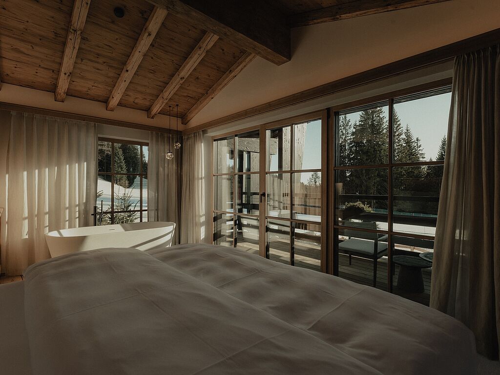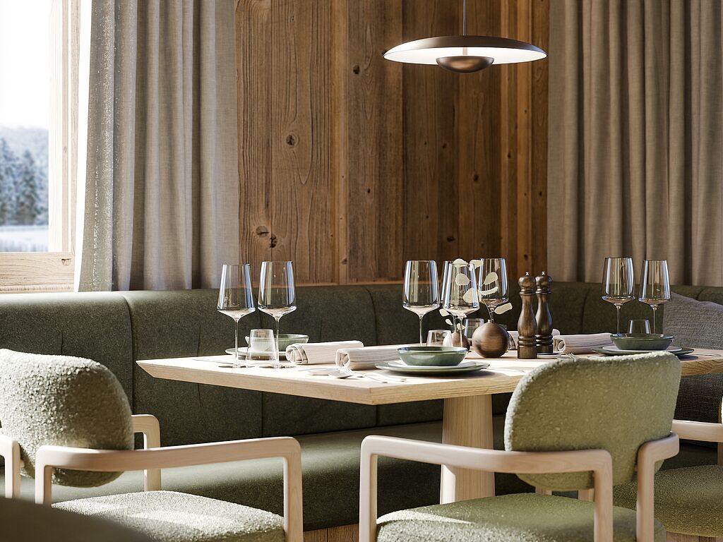 In culinary terms, the day at ZUEGG Alpine Cuisine & Chalet begins with a hearty breakfast, which is delivered directly to the chalet. At lunchtime, the restaurant spoils you with down-to-earth South Tyrolean cuisine, while in the evening, newly interpreted classics are served. Day guests can also enjoy Alpine specialties and regular events such as the Almtavolata or brunch with live music.