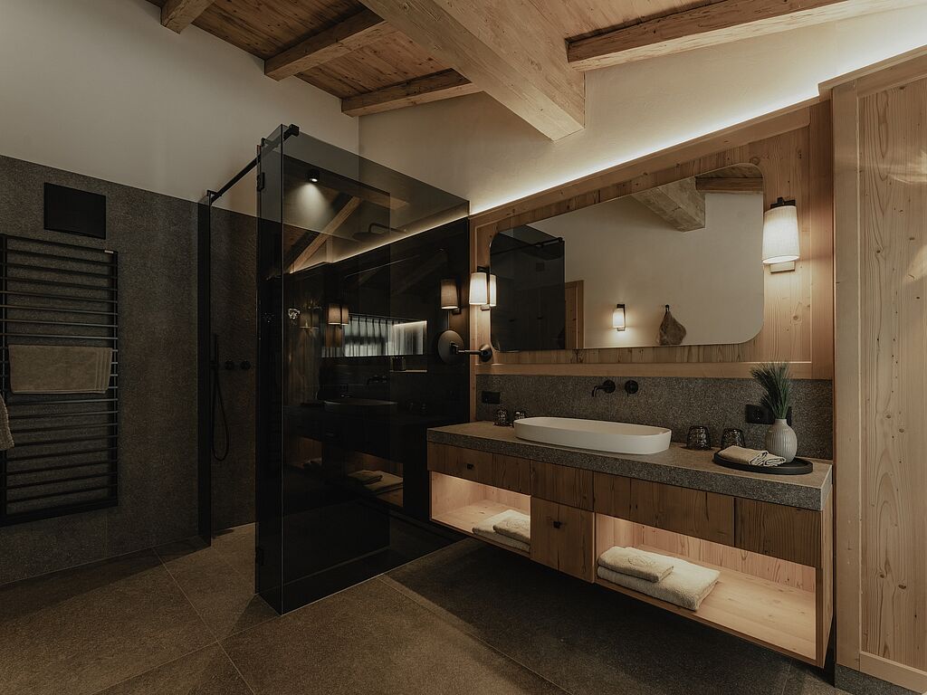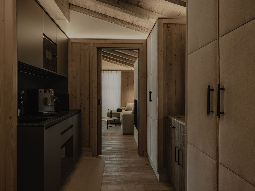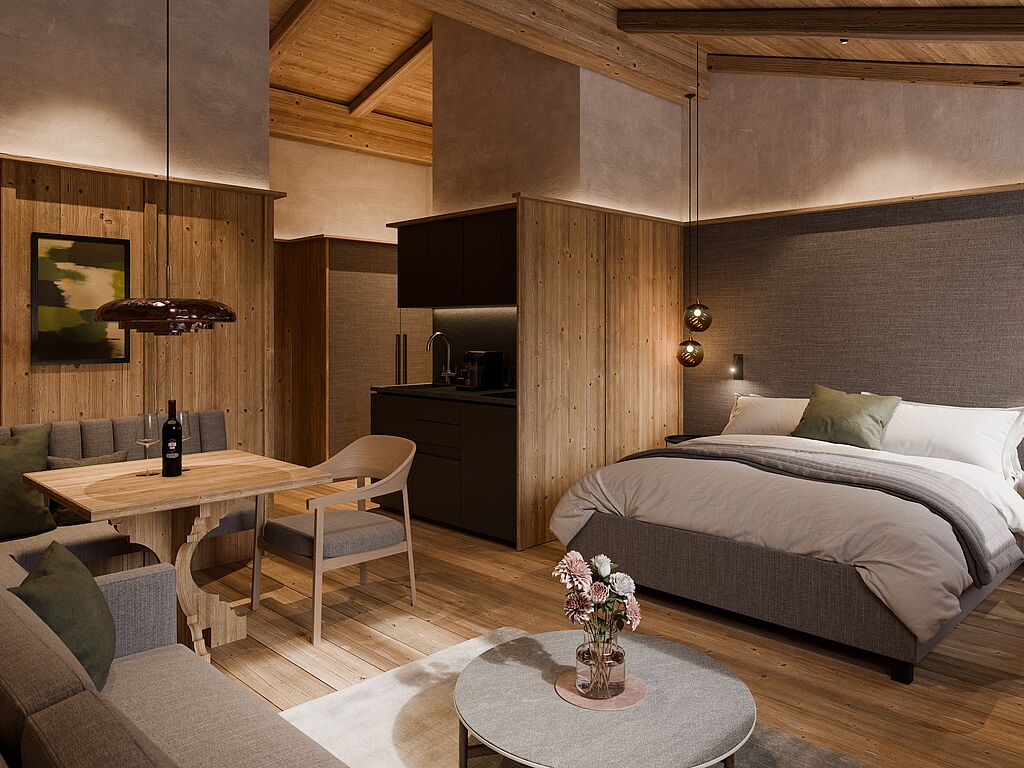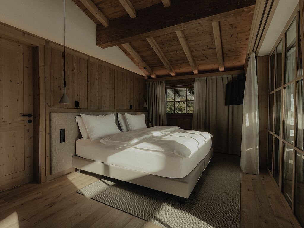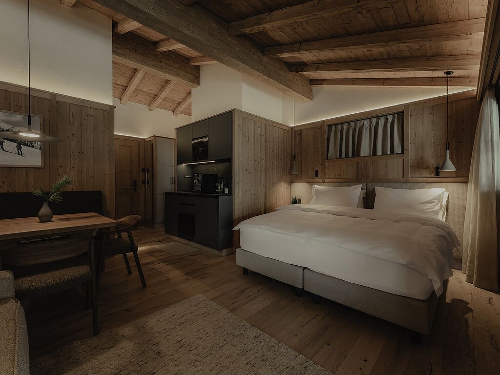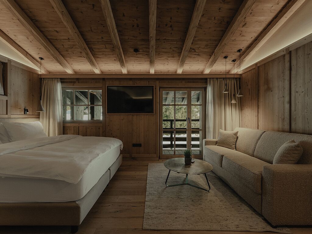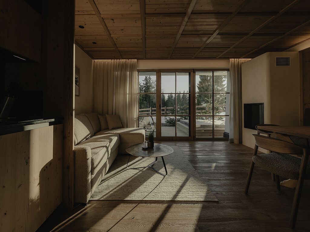 The Zuegg Loft also has a private spa area with a whirlpool and sauna, as well as a separate children's room. The charming Mountain Loft is ideal for two people and boasts an open-plan living and sleeping area with balcony, cozy couch, corner bench and modern kitchenette.