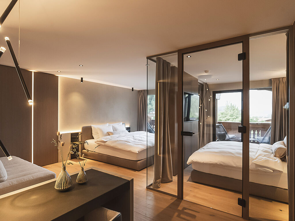 Auch die Unterkünfte lassen keine Wünsche offen. Die großzügigen Suiten sind mit getrennten Schlafzimmern, Bädern für Kinder und wohlriechendem Zirbenholz für ein gesundes Raumklima ganz auf die Bedürfnisse von Familien ausgerichtet.